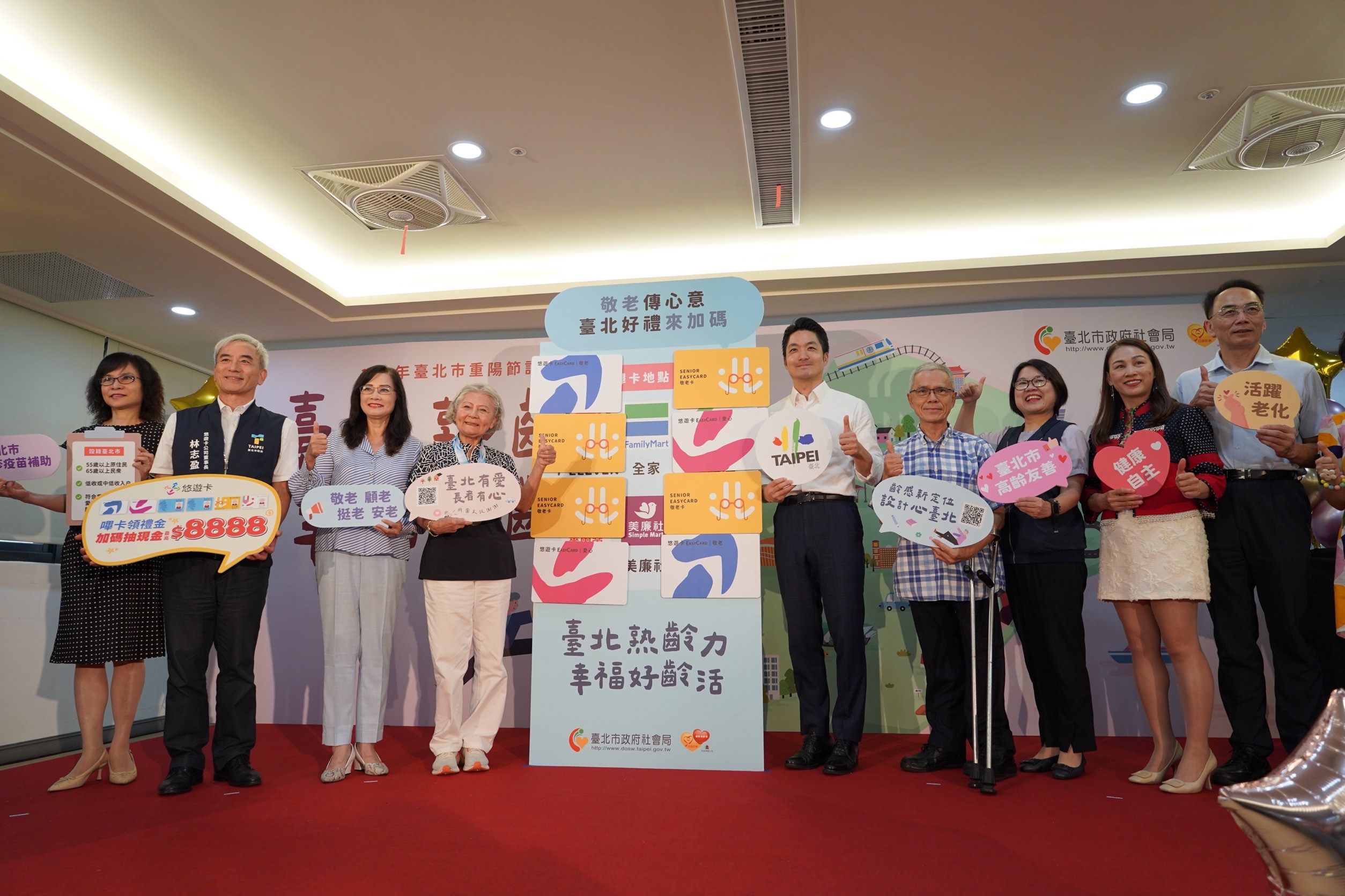 臺北市長蔣萬安表示,臺北市持續以「敬老、安老、挺老、顧老」出發,今年度調升重陽禮金發放標準,85至98歲(含75至88歲原住民)長者從1,500元提高至3,000元。並攜手悠遊卡股份有限公司辦理「敬老卡靠卡加碼抽獎活動」,最高獎金達8,888元,更加碼推出多重好康,凡持敬老卡或愛心悠遊卡,即可享有全台15大通路專屬優惠,另針對首次註冊悠遊付(Easy Wallet)的新用戶,還可領取500元的重陽大禮包,讓長輩的生活更加便利又實惠。