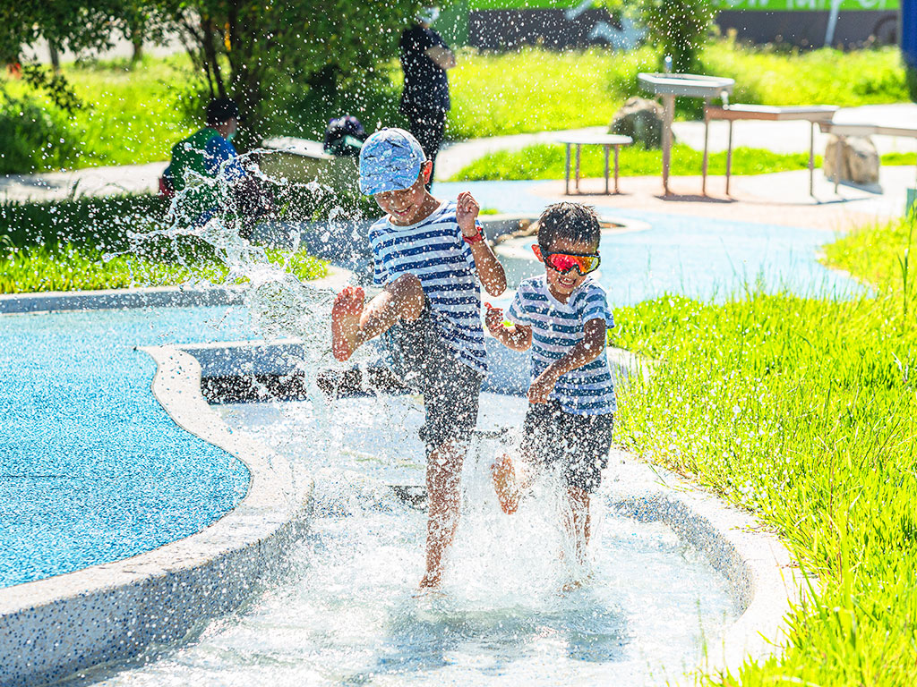 (記者余曉嵐 新北報導)在氣溫溫度不斷飆升的炎炎夏日,新北市景觀處向大家推薦一處搭捷運就能到的公園,讓民眾可以清涼一夏,位於新店的十四張歷史公園,是一座以農村歷史為主題的特色遊戲場,透過農村水圳意象設計,結合防災功能,是新北市首座機能可轉換成防災用途的公園,園內打造了10大共融特色遊具,包含2層樓高的穀倉溜滑梯外,還有一座水圳遊戲區,一到夏天就會開放,讓公園瞬間升級成水樂園。