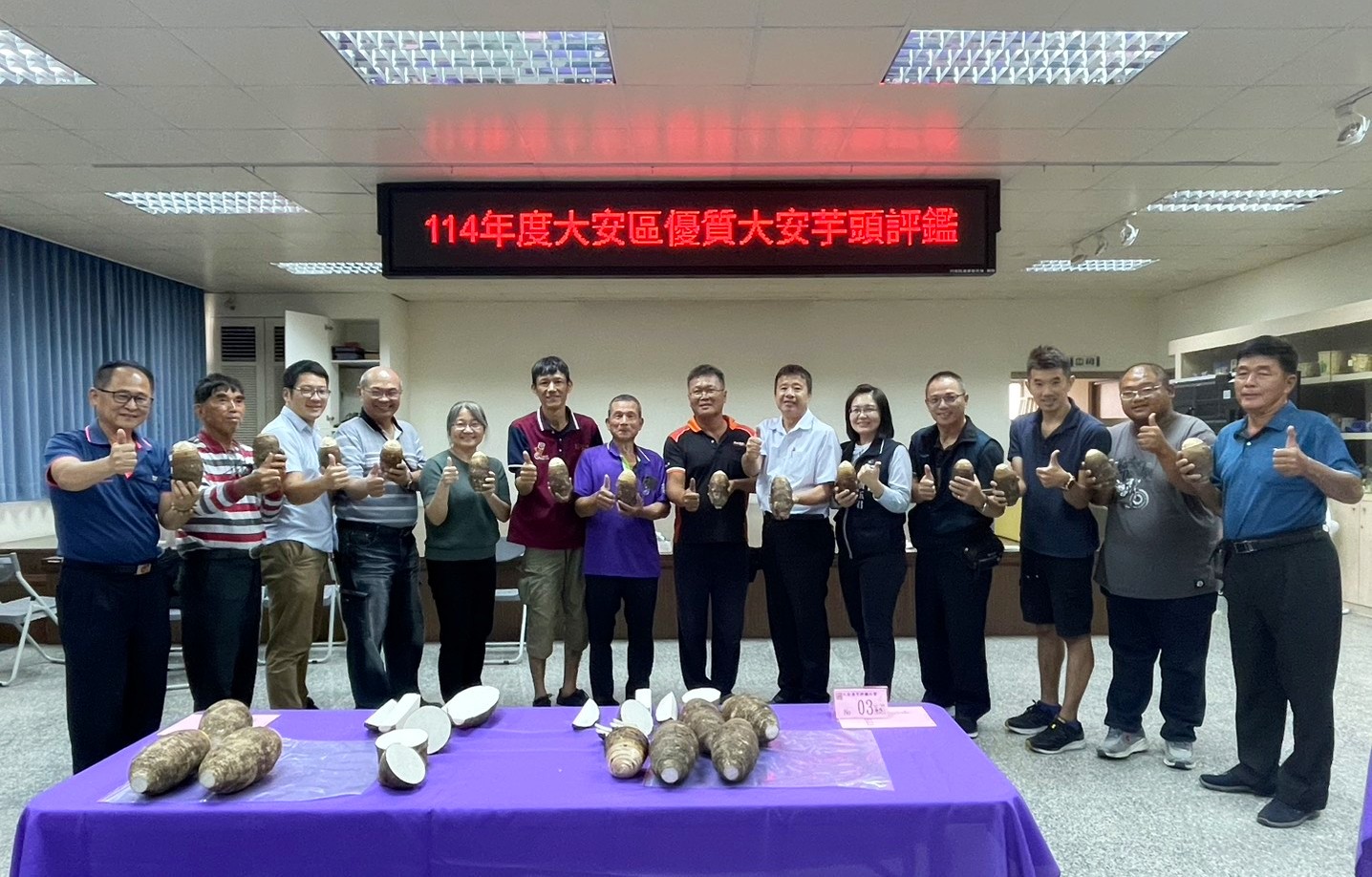 大安區農會從108年開始舉辦芋頭評鑑比賽,至今邁入第七屆。今年邀請農糧署中區分署台中辦事處陳瑛主任、農業部臺中區農業改良場蕭政弘副場長、錢昌聖副研究員、趙佳鴻副研究員、臺北農產運銷股份有限公司邱智偉、台中果菜運銷股份有限公司何澄茂股長等六位擔任評審。根據生鮮芋頭外觀整齊度、形狀、縱剖面及病蟲害情形,以及熟芋香氣、色澤、質地、口感等多項指標進行專業評比。初選出20名後,再進入第二階段評鑑。經過激烈的角逐,最後由黃至青榮獲特等獎, 鄭全益及賴定弘榮獲頭等獎,黃允居、林宏瑋及呂炳春獲金質獎,、陳誌龍、張原榕、林源棋、林家楊榮獲銀質獎,張哲瑀、蘇紹榆、李進合、黃繼仁、鐘天雨、賴柯、林義職、鐘智良、陳進興及黃建嘉獲優勝。