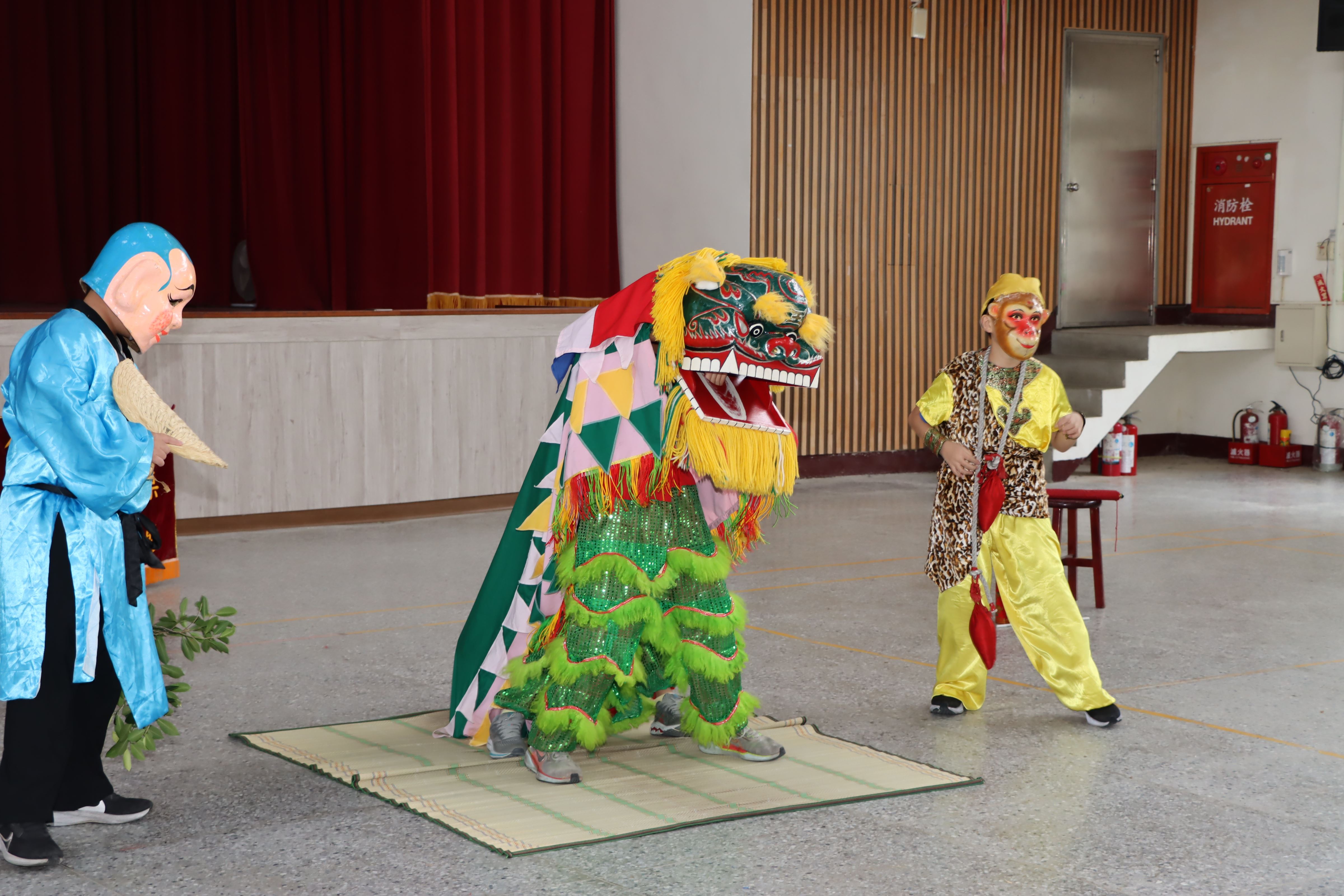 隨後登場的客家獅表演「客獅獻瑞」,歷時8分鐘,獅頭色彩鮮明,額上「王」字與七星圖紋象徵平安吉祥,演出融合戲劇、默劇、武術及舞蹈技巧,生動演繹傳統文化精髓。