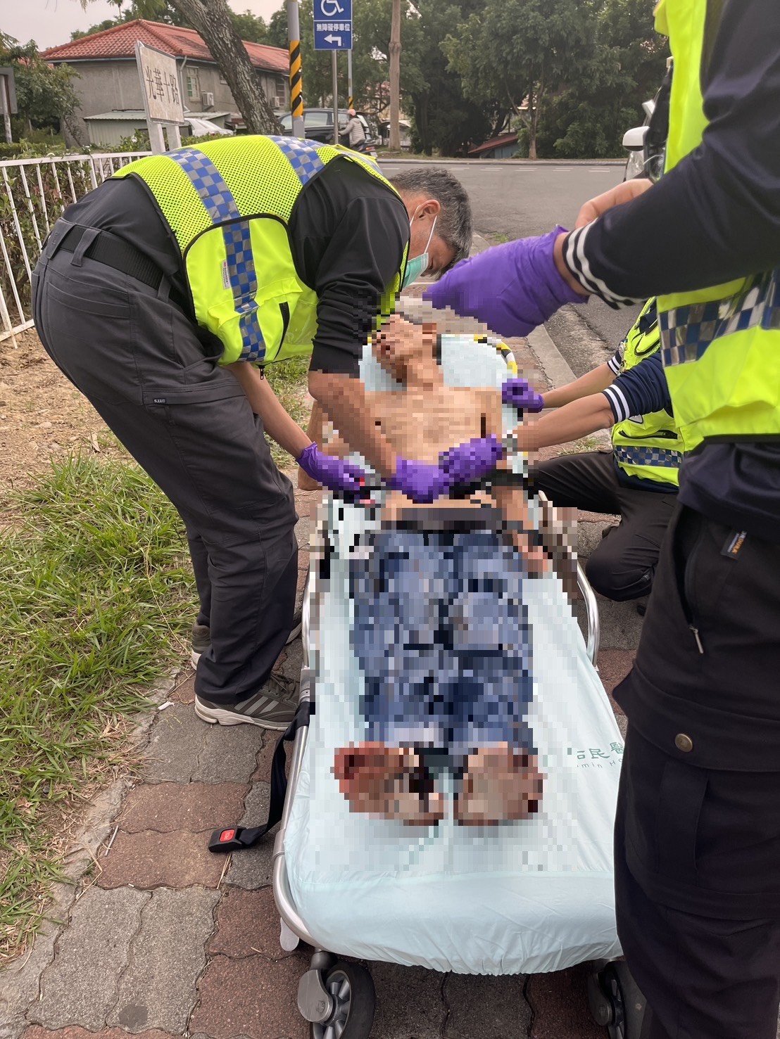 據悉,何員趕抵現場發現廖姓老翁癱坐在地,單手緊抓車門把手,努力維持坐姿避免倒地,旁邊的地面亦可見明顯大量血跡。經進一步瞭解,該老翁稍早將車輛停放在兒童公園旁,下車至附近購買午餐,返車準備用餐時突然感到強烈身體不適並口吐鮮血。他意識到情況危急,連忙下車到路旁休息,但仍持續吐血,體力迅速下滑,最後無法站立,只能坐下拉著車門支撐。警方見狀立即通知救護人員到場,並持續陪同在側觀察老翁狀況、安撫其情緒,以避免其因虛弱再次跌倒而造成二度傷害。救護人員抵達後迅速將其送往草屯佑民醫院急救,警方也聯繫家屬到院照護,廖姓老翁及其親友皆對警方的及時協助表達感謝。