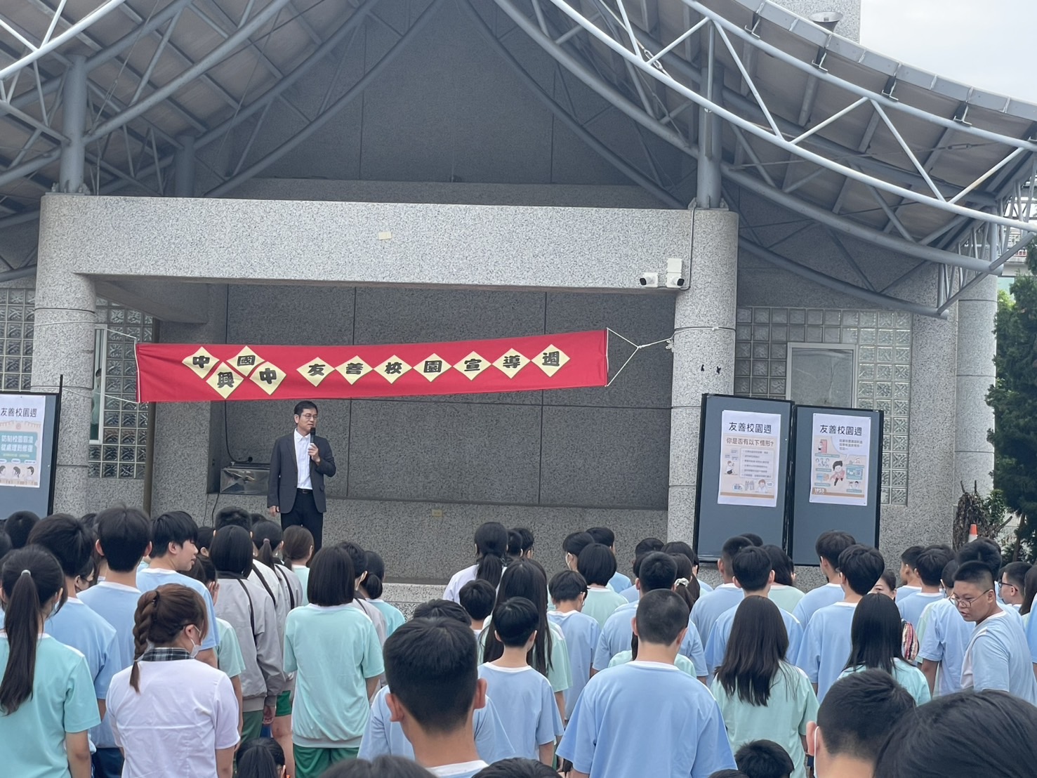 【記者廖廣學/南投報導】校園的鐘聲再度響起,在推動友善校園、防制校園霸凌的關鍵時刻,南投縣中興國中於友善校園週朝會中,創新採用動漫人物作為教育引導素材,由校長鄭俊楠透過經典卡通《哆啦A夢》中五位角色——胖虎、大雄、小夫、小杉與靜香——對應現實中校園裡的各類角色樣態,向全校學生進行一場深具教育意涵與自我省思的反霸凌宣導。
