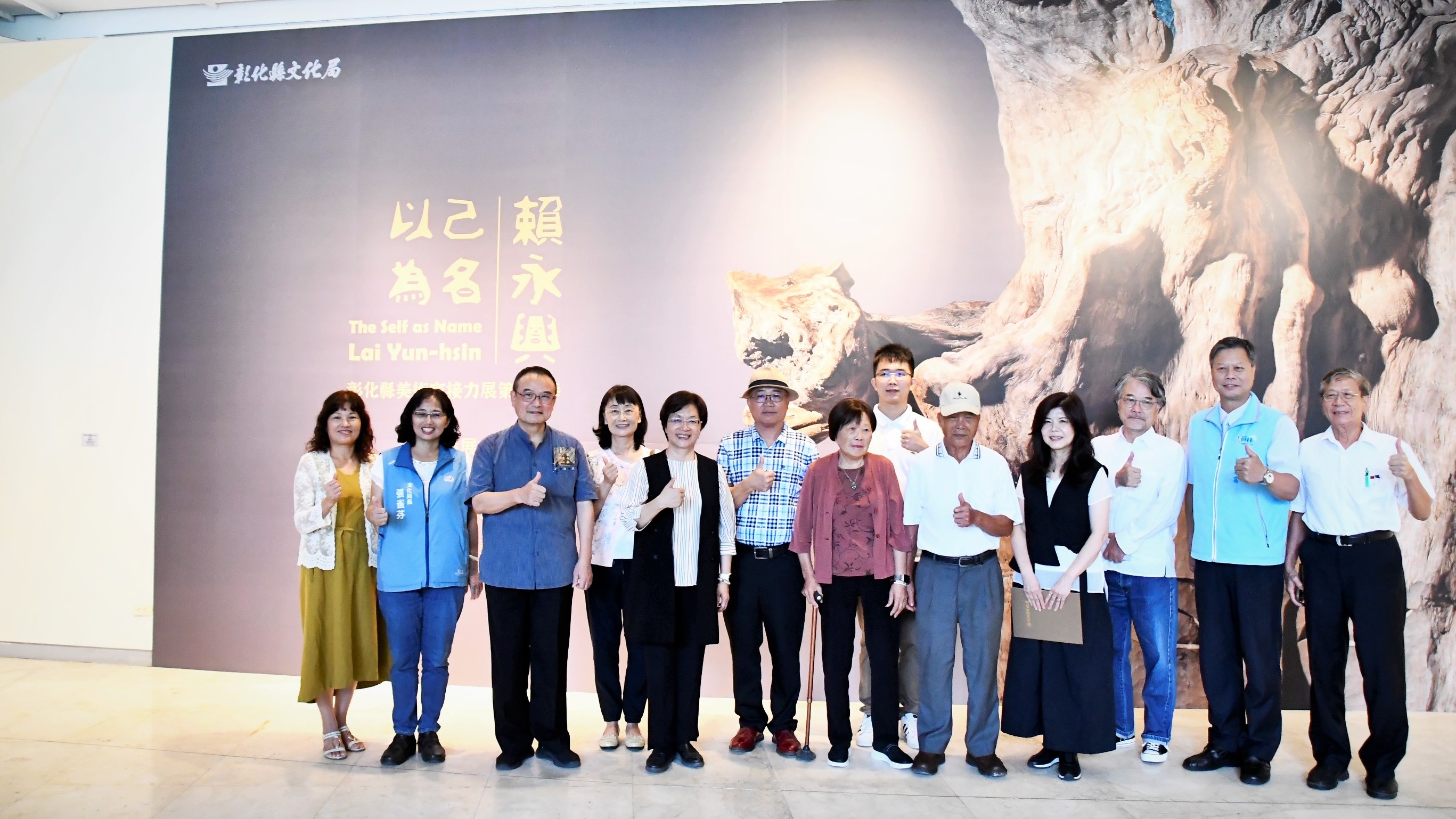 (記者邱暐茹 彰化報導) 雕塑博士賴永興首次在家鄉彰化舉辦大型個展,彰化縣文化局自即日起至9月21日在縣立美術館展出「以己為名–彰化縣美術家接力展第116棒賴永興創作展」。今(6)日上午舉行開幕式,彰化縣長王惠美、展出者賴永興、國立故宮博物院長蕭宗煌、策展人暨臺灣藝術大學美術學院院長劉俊蘭等貴賓共同揭幕。王縣長表示,賴老師善於將原木的裂痕與孔隙轉化為負空間語彙,作品靜謐卻蘊含力量,是當代雕塑的重要能量。此次展覽以《自刻像》系列為主軸,匯聚22組代表作與大型新作,誠摯邀請各界蒞臨欣賞。