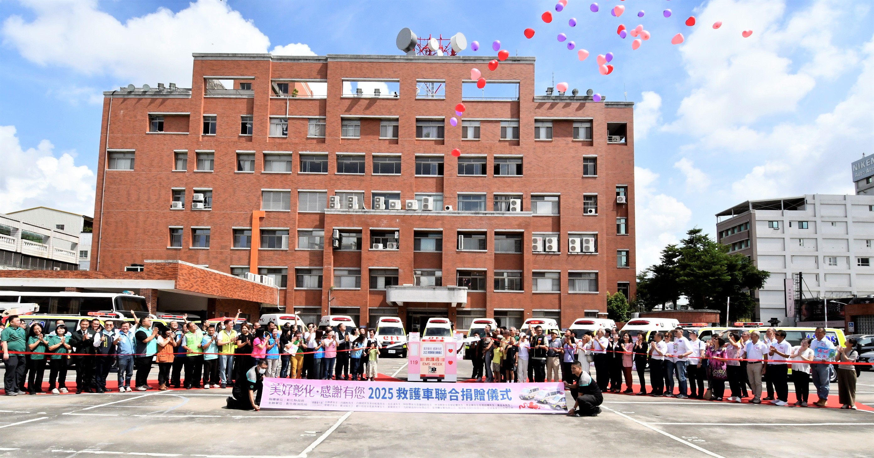 (記者邱暐茹 彰化報導)為感謝各界善舉,彰化縣消防局今(9)日「全國救護日」於警察局中庭舉辦「美好彰化 感謝有您~2025救護車聯合捐贈儀式」,由縣長王惠美代表接受21位捐贈者共同捐贈的13輛全新救護車。王縣長表示,彰化人很有愛心,經濟實力也不差,甚至有因捐贈意願踴躍,需排隊等候的情形,這是為確保每輛救護車都能按實際需求分發,避免資源浪費。感謝所有捐贈救護車的企業和鄉親朋友,因為有你們,彰化縣的救護能量再次升級,這次迎來13輛全新的救護車,總金額達到4,814萬元,加上去年這兩年共獲得32輛救護車,總金額高達1億1,524萬元,創下史無前例紀錄,堪稱全國最強的公私協力合作紀錄。