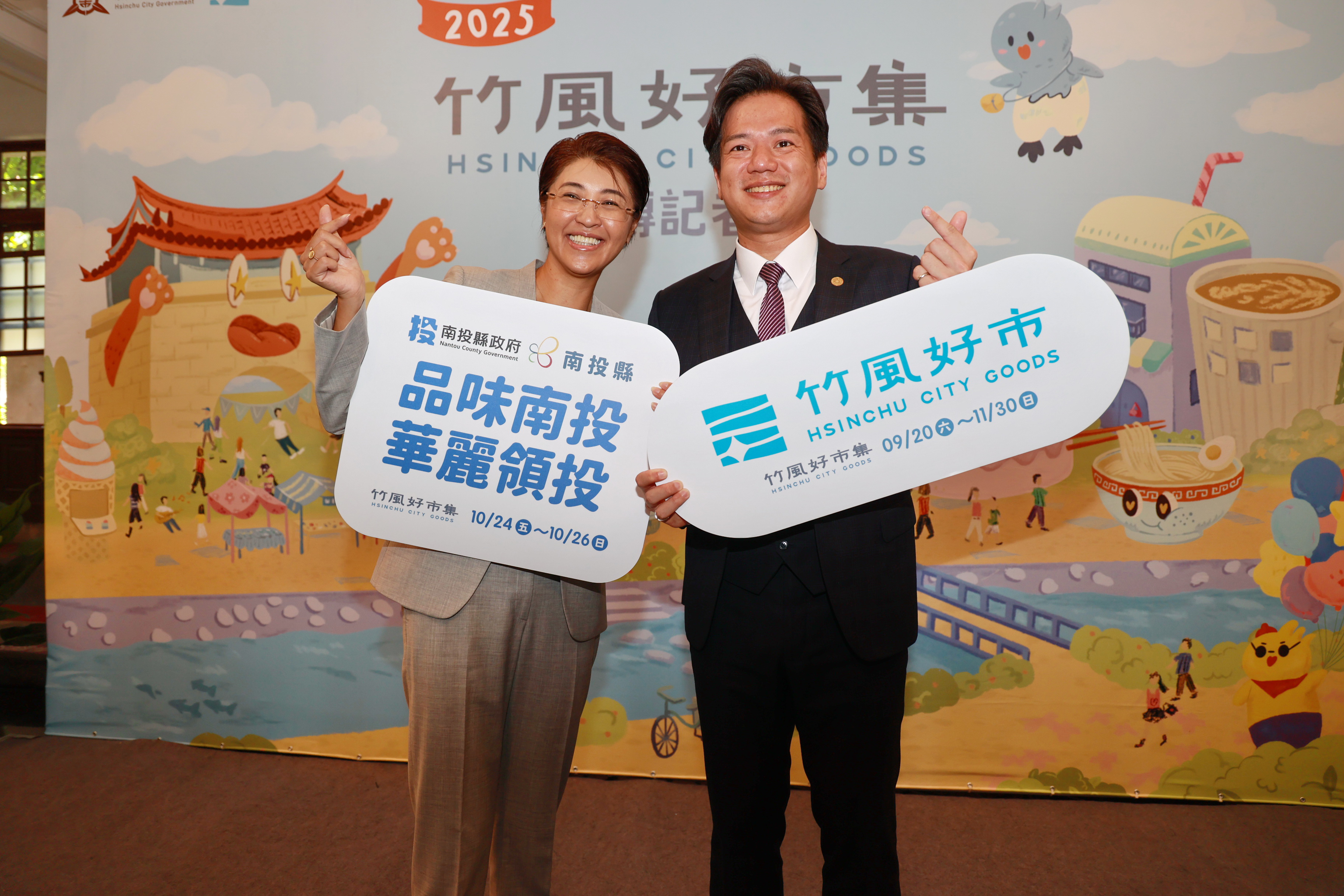 (記者廖廣學 新竹報導)由新竹市政府主辦的「2025竹風好市集」將於9月20日起熱鬧登場,南投縣將在竹市東門城護城河畔設立「品味南投特色品牌專區」,展開銷售活動。新竹市政府10日舉辦記者會,代理市長邱臣遠偕同南投縣長許淑華等人為活動揭開序幕,不但聯手造勢,更跨縣市拉高能見度,強調「竹風好市集」好吃好玩;南投茶博、國慶焰火不可錯過。