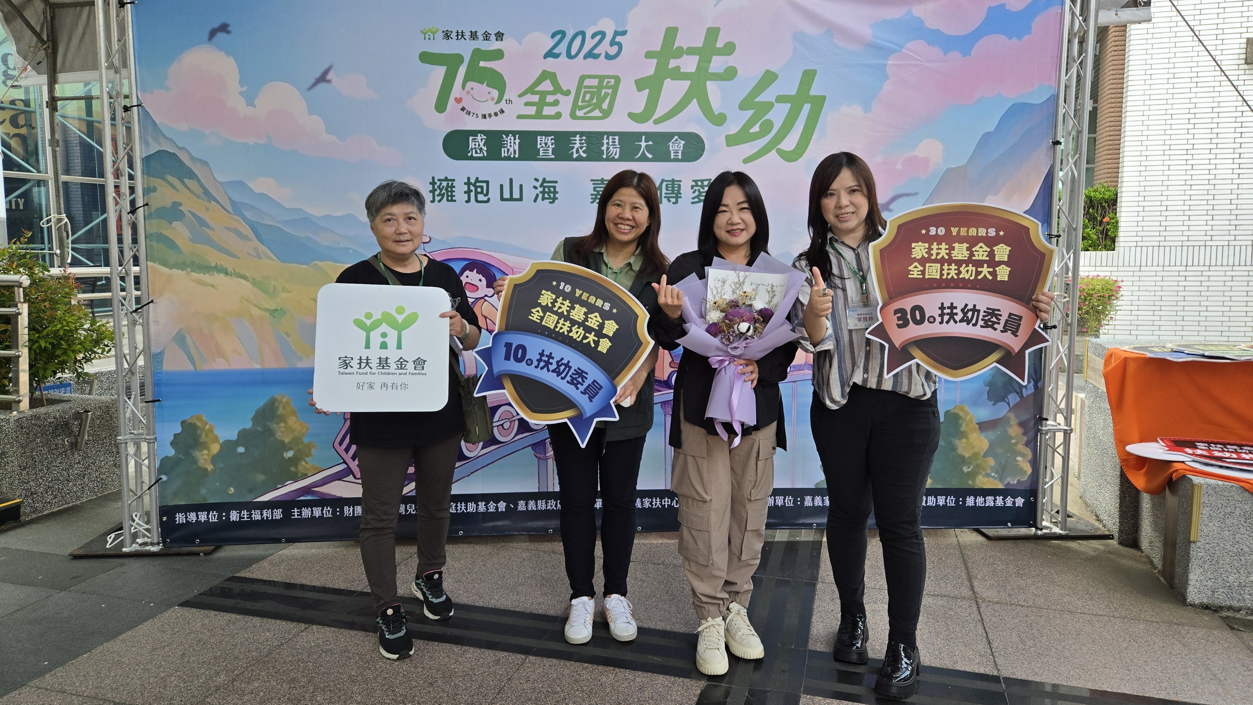 個性直爽且熱心助人的林冠岐女士,經友人介紹而認識家扶基金會,並因對服務理念的認同而加入南投家扶中心扶幼委員的行列。期間除了號召更多志同道合的夥伴一起加入扶助工作外,更積極參與中心各項大小活動,「三十年的堅持,只為了孩子們的微笑!」。同樣來自埔里的馬文君委員在尚未擔任民意代表前,便積極響應並協助家扶辦理各項活動,因深感公益事業需要更多人投入,特別與家人攜手並肩,共同支持家扶,募集更多物資與經費外,更在2024年募得兩輛服務專車進駐家扶埔里服務處,提供物資運送及接送才藝隊的孩子們使用,讓家扶在偏鄉提供服務時如虎添翼。來自水里的余有堃委員總是本著愛心不斷、傳遞溫暖的初心,持續為大水里區的扶助家庭在奔走,不僅出錢出力,更連結各民間社團單位齊心合力,發揮公益影響力,帶動更多人一同加入扶幼濟貧的行列。