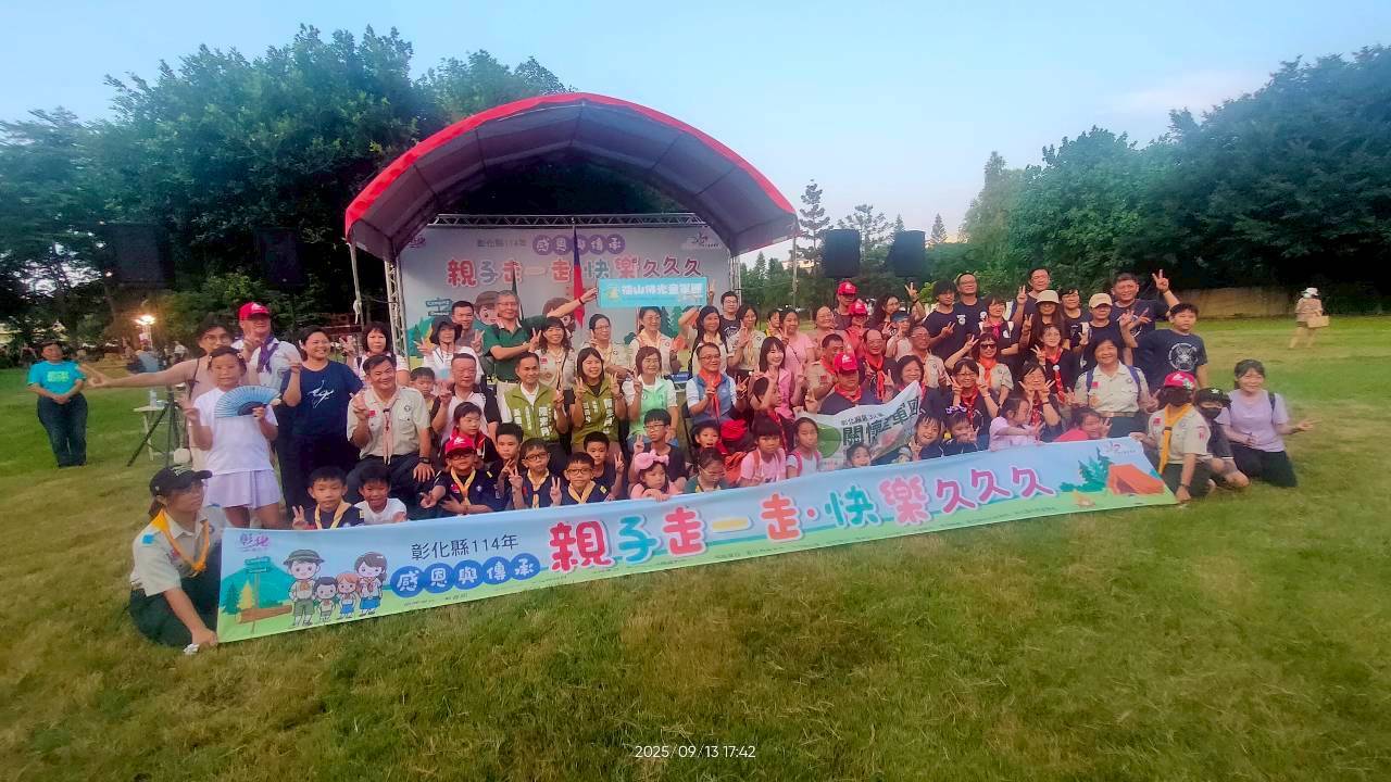 (記者邱暐茹 彰化報導) 為推廣童軍教育並促進家庭親子共學共樂,彰化縣政府13日在溪湖糖廠舉辦「114年親子走一走,快樂久久久—感恩與傳承 樂齡童軍家庭親子體驗營」,活動現場熱鬧非凡,吸引家庭親子組隊及服務員共約550人參加。