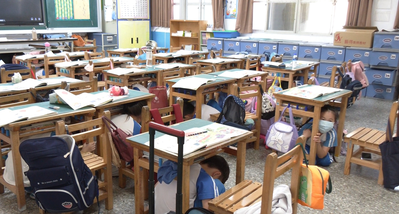 (特派員廖廣學 南投報導)南投縣政府15日上午9時21分,在草屯鎮草屯國民小學舉辦「國家防災日地震避難掩護示範演練暨防災教育研習」,活動邀請全縣各國小承辦業務人員到場觀摩,警報響起,全校師生立即躲在桌底,等待搖動停止,學生帶著防護頭罩,由班級老師帶領到操場,清點人數,並檢查是否有人傷亡,回報指揮中心處理, 整體演練歷時約20分鐘,過程嚴謹逼真,充分展現師生防災應變的熟練度。