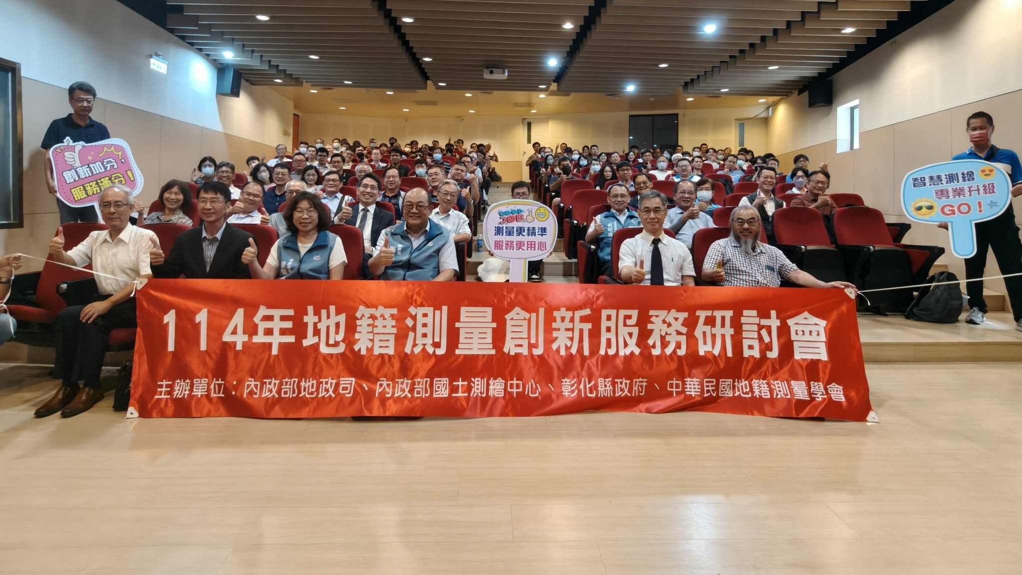 (記者邱暐茹 彰化報導)彰化縣政府地政處於19日在城市暨觀光發展處多媒體解說館舉辦「114年地籍測量創新服務研討會」,本次活動由本府與內政部地政司、內政部國土測繪中心、中華民國地籍測量學會共同主辦,邀集全國地政界專業人士齊聚一堂,針對地籍測量創新技術與實務挑戰進行深入交流與探討,現場來自各縣市地政事務所主任、測量人員及相關領域專家熱烈參與,座無虛席。