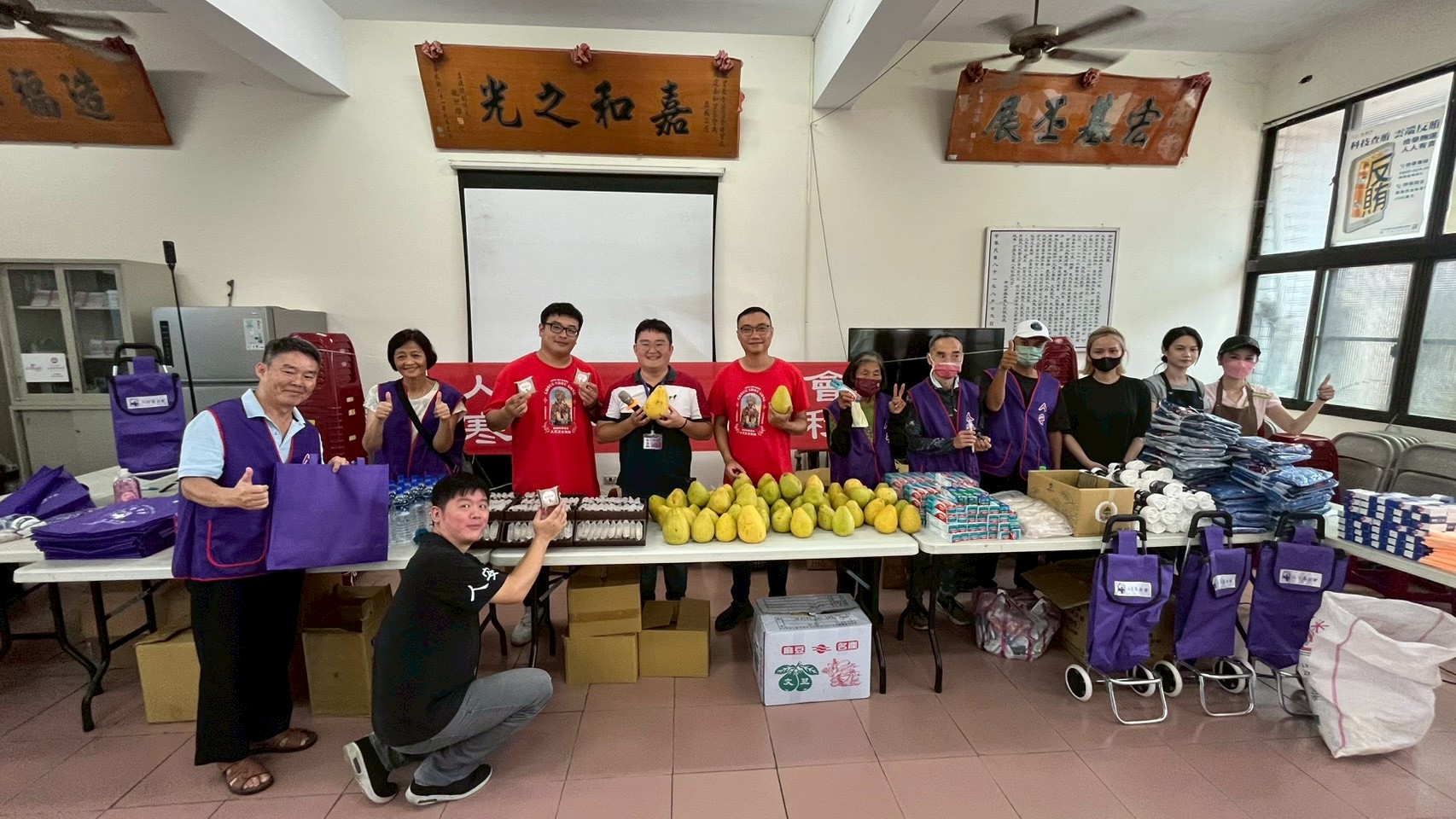 (特派員陳錦玲 南投報導)人安基金會南投平安站於10月03日,假嘉和里活動中心舉辦「幸福快遞」寒士慶中秋活動,人安基金會南投平安站發放應節禮品及關懷包(礦泉水、清潔用品、內衣褲等),加贈貼心的義工手作推車置物袋(讓寒士有一個方便的行囊收納),祝福秋節平安,助其感受社會關懷,激勵寒士重新出發。