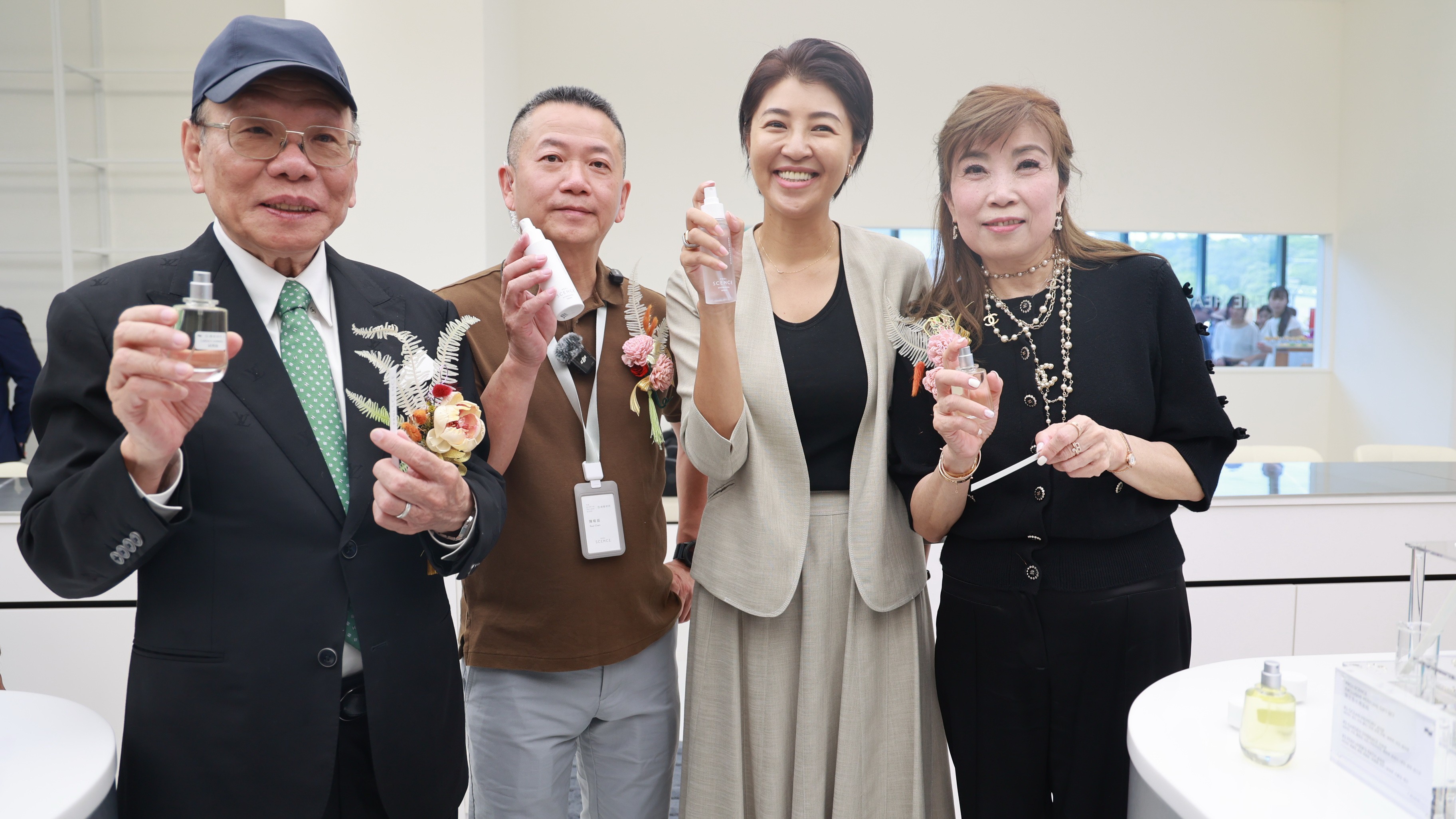 「亞洲香研所」可以體驗手作、聞香氣;香噴噴的味道,是不同的嗅覺體驗。許縣長不但試用香水,希望未來香氛的開發,也能延伸到茶香等領域,因為愛妮雅化「亞洲香研所」集合原料、研發、生產、教育及行銷於一體,更將在南投培養研發人才,創造更多就業機會,實現企業目標。