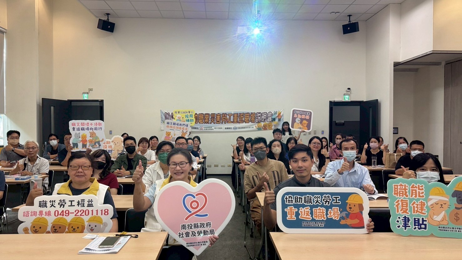 縣府社會及勞動局依據111年5月1日施行之「勞工職業災害保險及保護法」(以下簡稱災保法) 施行,辦理「協助職業災害勞工重返職場補助辦法作業計畫」。114年下半年度預計辦理3場次,以事業單位負責人、主管、人事相關業務人員及勞工為對象,邀請勝綸法律事務所執業律師,以職災勞工復工權益、雇主責任及實務案例為主軸,期能增進與會人員對於各項權益與義務的瞭解。第一場次114年10月3日(星期五) 及第二場次114年10月9日(星期四)於經濟部中台灣創新園區辦理,第三場次114年10月21日 (星期二)於埔里冠月精品旅館辦理,目前三場次報名皆已額滿,預計參與人數180人。