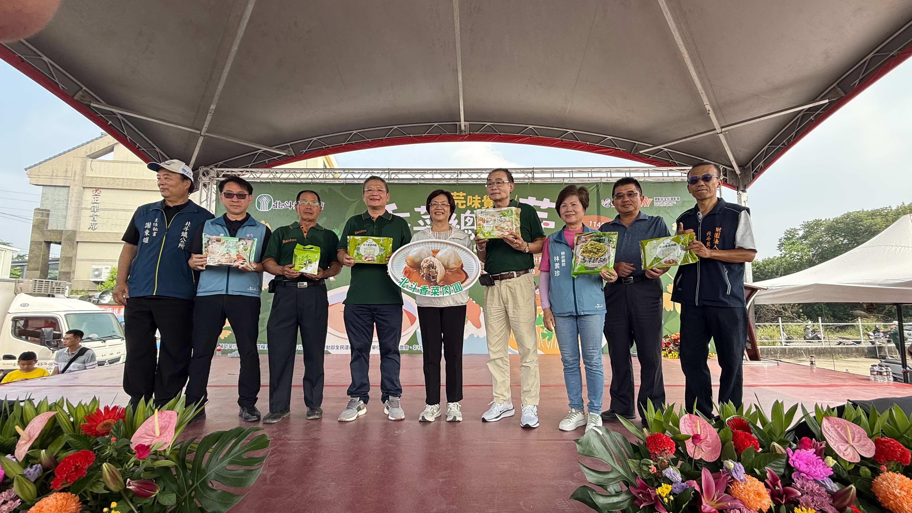 (記者邱暐茹 彰化報導)北斗鎮農會今(4)日在北斗奠安宮停車場舉辦「芫味覺醒、香菜總動芫 -產業文化活動」,現場有在地創意料理、家政班創意料理展示(售) 、米食及禽畜產品品嚐及親子DIY活動等,讓民眾享受在地美食及透過遊戲來推廣食農教育。今天同時也是北斗鎮農會新產品香菜肉圓上市發表會,彰化縣長王惠美應邀與北斗鎮農會理事長廖泳達、常務監事黃萬乙、總幹事陳瑩昇及與會貴賓一起見證這項創新,王縣長大力行銷北斗在地香菜產業,歡迎大家品嘗獨特風味。