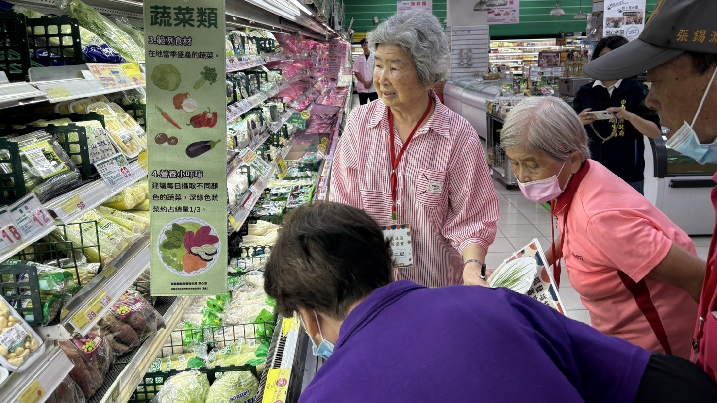衛生局17日在楓康超市南投店舉辦「超市營養採購趣!」活動,特別邀請芳美社區的長輩們參加,由南投縣社區營養推廣中心營養師帶領,將平時在社區舉辦的營養講座搬進超市現場。長輩們推著購物車,一邊挑選當日據點午餐所需食材,一邊學習食物六大類、營養價值及每日應攝取的份量,實地認識「我的餐盤」均衡飲食的六口訣,從實作中落實健康飲食概念。