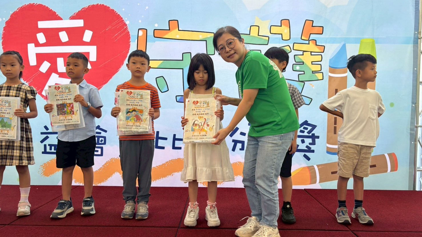 (特派員陳錦玲 南投報導)為推廣「尊重生命、關懷植物人」理念,鼓勵國小學童以畫筆描繪心中最幸福的畫面,創世基金會草屯院辦理「愛守護」公益繪畫比賽,獲水云茶堂阿里山鐵道紅茶與南投縣婦女關懷協會等單位支持。活動共收到近1,800 份創作作品,由專業美術老師林婕安林郁欣,評選出低中高年級各組前3名及佳作,共39幅優秀作品。今日(10/18),在樹德半山夢工廠舉辦頒獎典禮,水云茶堂副總洪峻麒、樹德半山夢工廠副營運長張舒扉林婕安老師、創世草屯院院長曾香潓頒發獎狀乙紙及樹德半山夢工廠提供的精美禮品,共同見證孩子們的榮耀時刻。