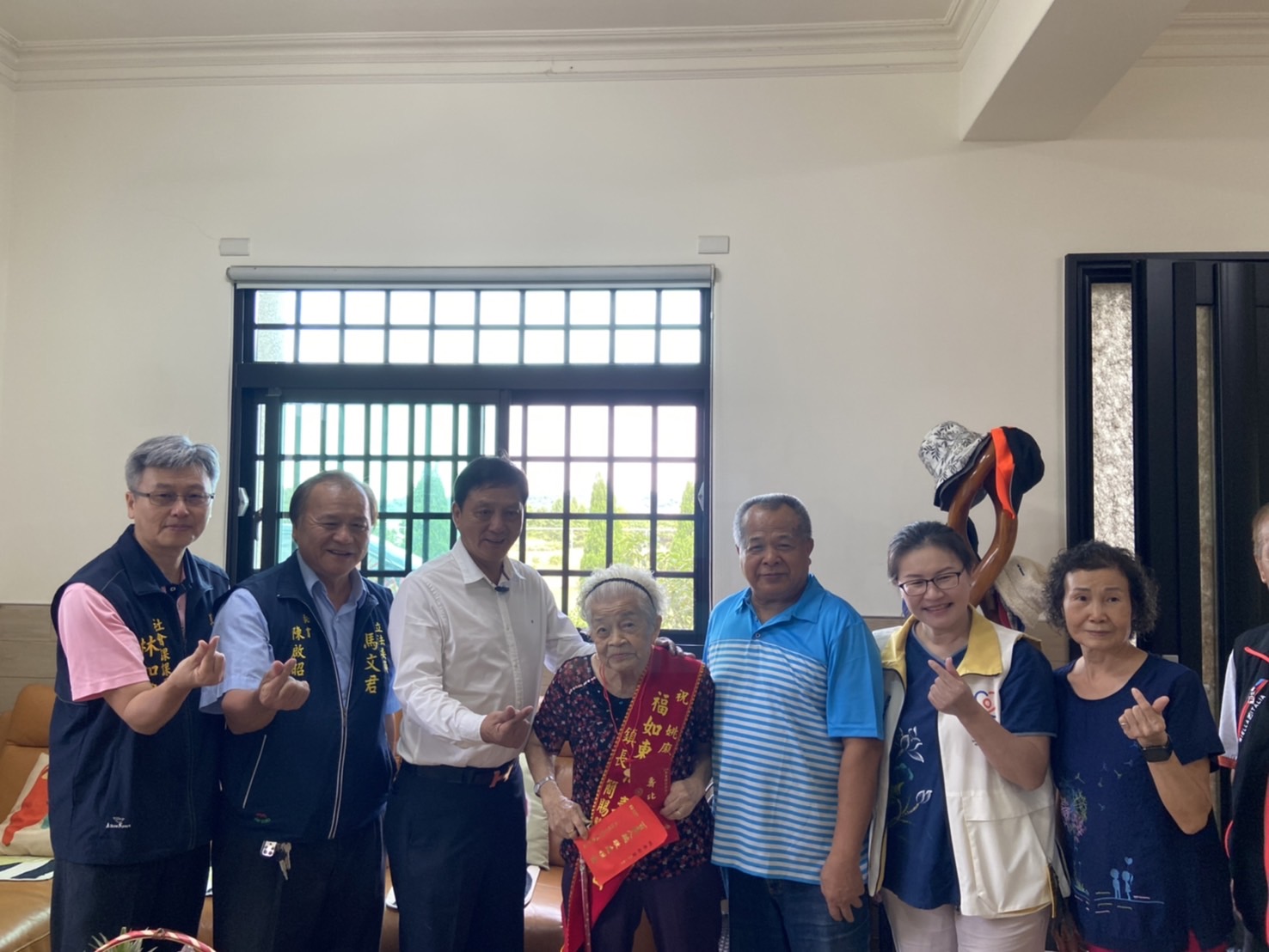 鎮公所重陽敬老禮金於114年10月15日起陸續由各里鄰長至長輩家中發放,簡賜勝鎮長於114年10月21日上午分別前往本鎮明正里百歲人瑞王清霜 (103歲)、中原里百歲人瑞姚廖彩雲(101歲)、山腳里百歲人瑞劉陳秀英 (100歲)、石川里百歲人瑞何簡閃 (102歲)、石川里百歲人瑞洪李鸞 (100歲)、新庄里百歲人瑞洪桐炉(100歲)、新庄里百歲人瑞洪煥祺(100歲)及加老里百歲人瑞洪蕭𧃃 (101歲)等8位人瑞住所,致贈重陽敬老禮金及壽桃壽麵水果禮盒,表達關懷與祝壽之意。
