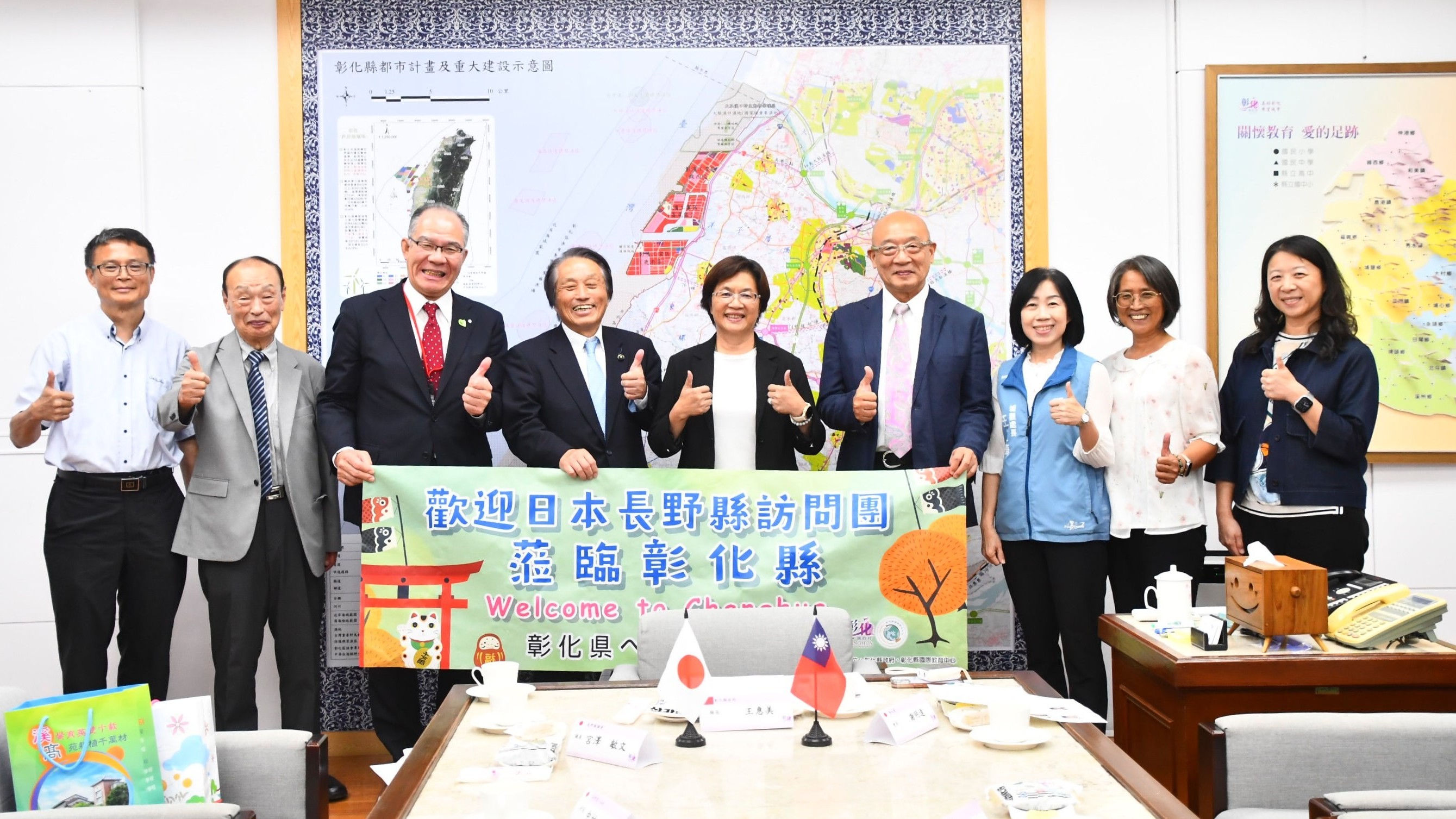 王縣長表示,自104年小谷村中學與本縣二水國中締結姊妹校開始,就開啟彰化與長野的交流旅程。108年小谷村長與山田光美教育長來訪彰化,為雙方合作寫下關鍵的一頁。即使在疫情期間,本縣鹿鳴國中、鹿港國中及竹塘國中仍透過線上與長野縣的學校保持交流,目前雙方已建立多所姊妹校合作協定。112年長野縣關昇一郎副知事到訪,就國際交流、教育旅行,以及高齡化社會的健康與福利等議題深入對談,為後續合作奠定良好基礎。