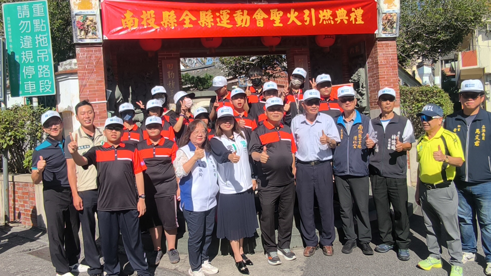 在書院主委張振昌引導下,王副縣長點燃聖火,再將聖火遞給縣府教育處長王淑玲,最後由五育中學聖火隊傳遞出去;聖火起跑,南投國小師生站在道路兩旁歡迎,學生歡呼,拍手叫好,場面熱絡。