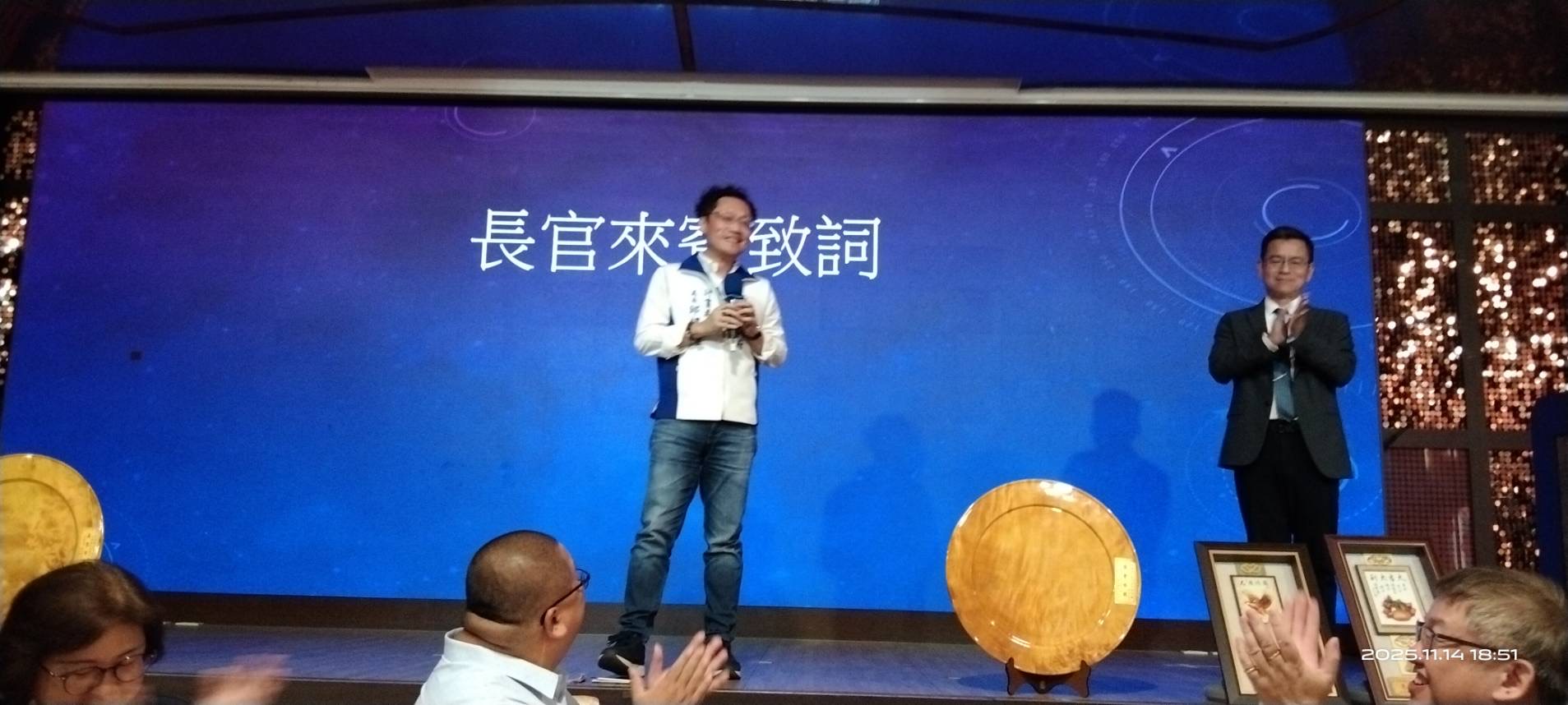 南投市長 張嘉哲 也特別讚揚吳俊賢會長能兼顧產業創新與教育情懷,是南投青年最亮眼的典範。他也感謝杜俊毅會長任內的奉獻,強調教育的力量來自家庭、學校與社區的共同信念。