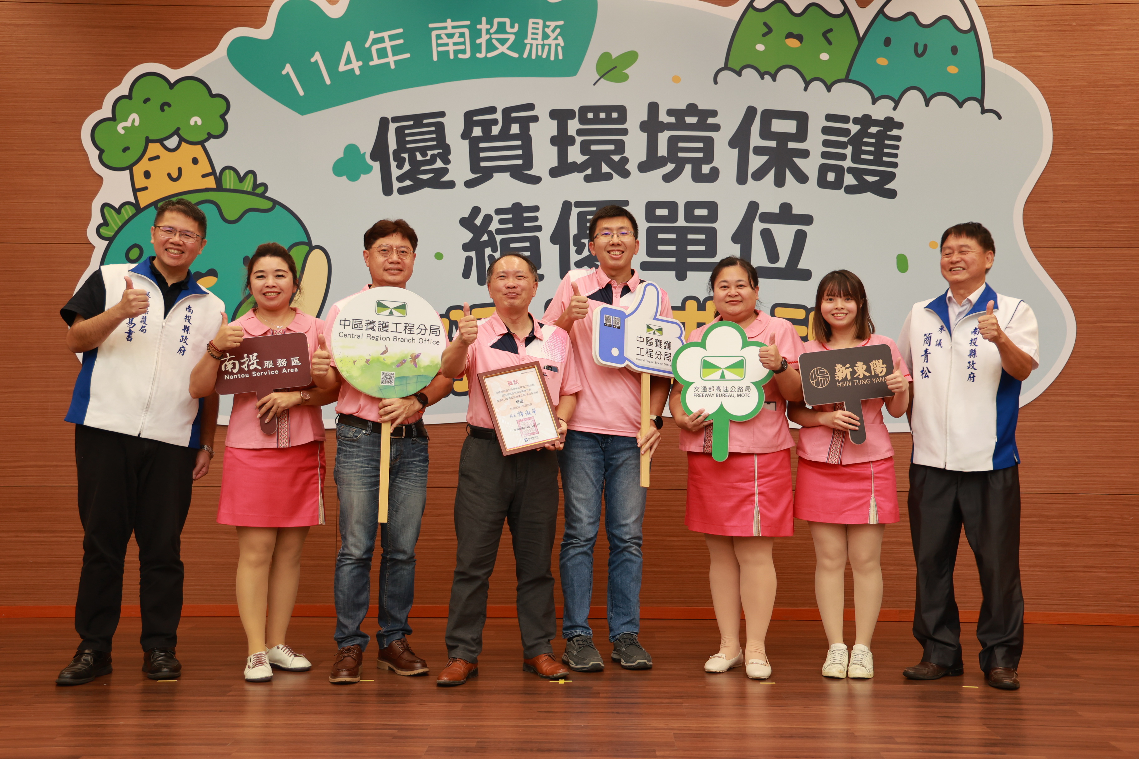 (特派員廖廣學 南投報導)114年南投縣優質環境績優單位頒獎典禮,17日表揚環境教育、環境衛生及綠色採購績優單位,縣府肯定各公民營單位及團體環保績效,期望帶動民眾響應。