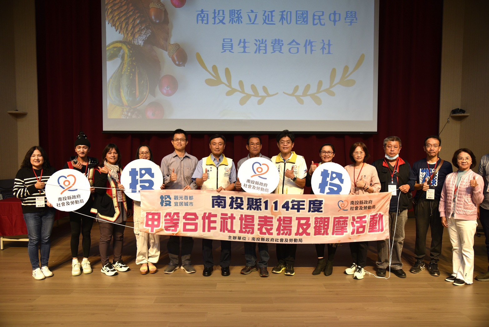 (特派員陳錦玲 南投報導)縣府辦理114年度甲等合作社場表揚及觀摩活動  縣政府18日在縣府7樓國際會議廳舉行「南投縣114年度甲等合作社場表揚及觀摩活動」,表揚縣內年度評鑑中表現優異、獲得甲等殊榮的合作社,共有38家﹙一般類社場4家、教育類社場15家、農業類社場19家﹚獲此肯定,由縣府社會及勞動局林志忠局長親自頒獎,肯定這些合作社場在經營管理、社員參與、社會責任及永續發展等面向皆有傑出表現,是南投地方經濟與社區發展的重要推手。