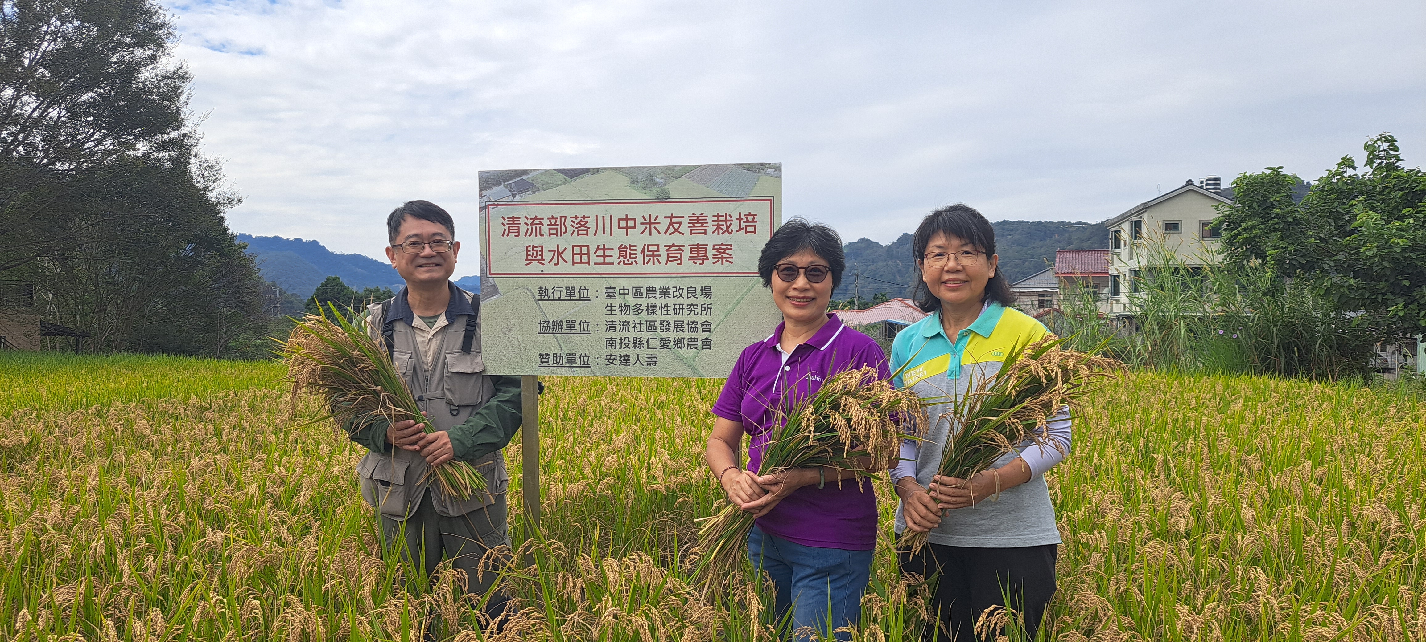 (特派員陳錦玲 南投報導) 農業部生物多樣性研究所與臺中區農業改良場共同推動「川中米友善栽培與水田生態保育專案」,於南投縣仁愛鄉清流部落展開友善農業及生物多樣性調查工作。此專案由安達人壽贊助,計畫結合在地農友力量,推動稻作減藥栽培、棲地營造及生態監測,期望打造兼顧農業生產與生態保育的示範農村(圖1)。