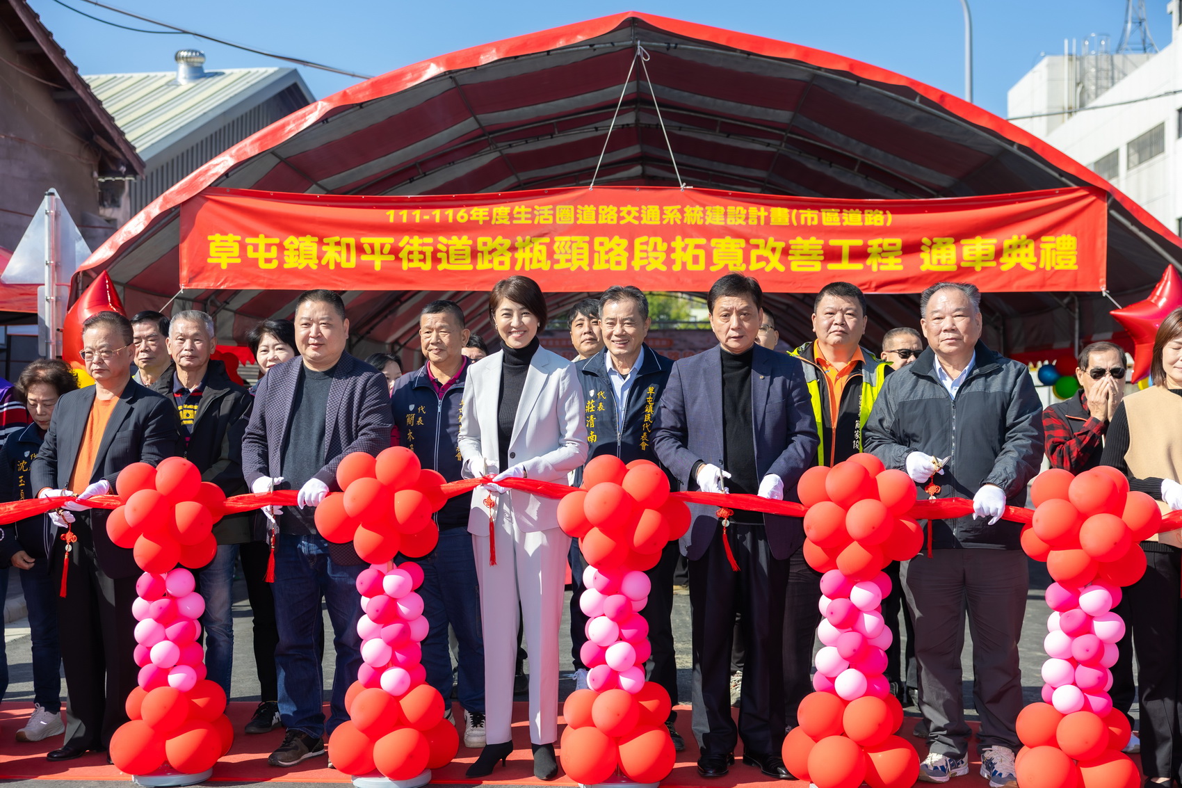(特派員廖廣學 南投報導) 位居鎮中心的草屯鎮和平街,早期巷道路幅狹窄、車流繁雜,為改善該瓶頸道路,縣府與草屯鎮公所向內政部國土管理署爭取拓寬改善工程補助,三方合作突破老舊街廓瓶頸。工程歷時一年多,10日正式通車,縣長許淑華、草屯鎮長簡賜勝、國土署都市基礎工程分署長陳俊雄及許多民代、鄉親共襄盛舉,一起見證草屯市區道路的完善之路。