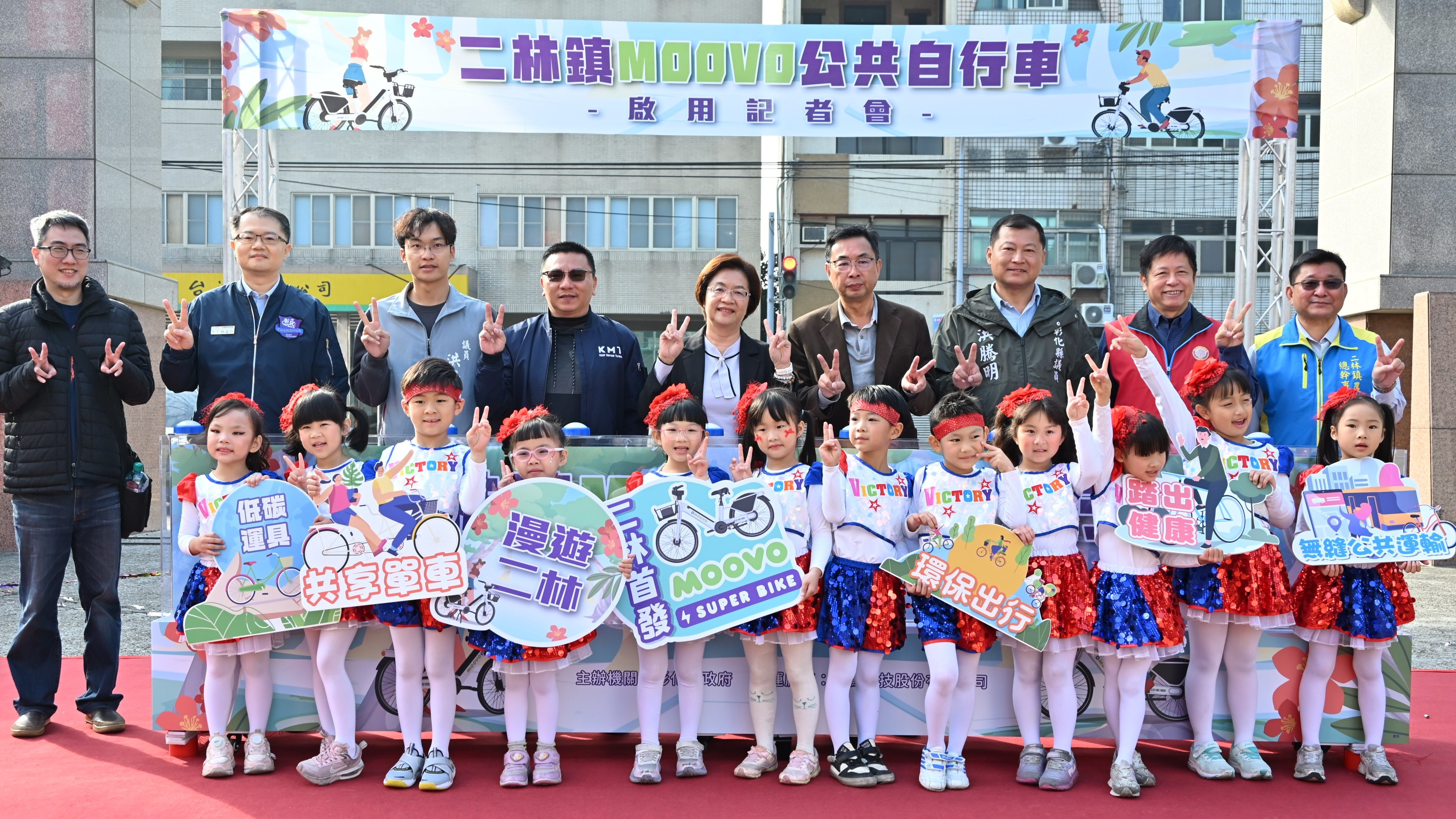 二林鎮長蔡詩傑表示,感謝王縣長縣府團隊用心規劃,設置二林鎮9個MOOVO站點,宜居城市首要交通便利,透過連結MOOVO自行車交通據點,共同打造低碳、減碳、宜居的城市。