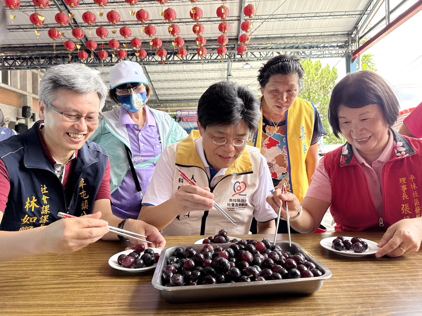 ( 記者邱暐茹 南投報導)一年一度的「葡荔節」活動,22日在平林社區發展協會舉行,活動結合農業、文化與觀光的社區盛會,在葡萄與荔枝雙果齊熟的甜美時節盛大登場,今年更邀請到南投市及草屯鎮多個社區產業共襄盛舉,設立聯合展售區,一同呈現在地農村社區產業的豐富面貌。包括立法委員馬文君、縣議員唐曉棻、鎮長簡賜勝、鎮代表會主席陳文忠、多位地方代表、里長等貴賓都到場共襄盛舉,一起推廣行銷平林優質的荔枝和葡萄。