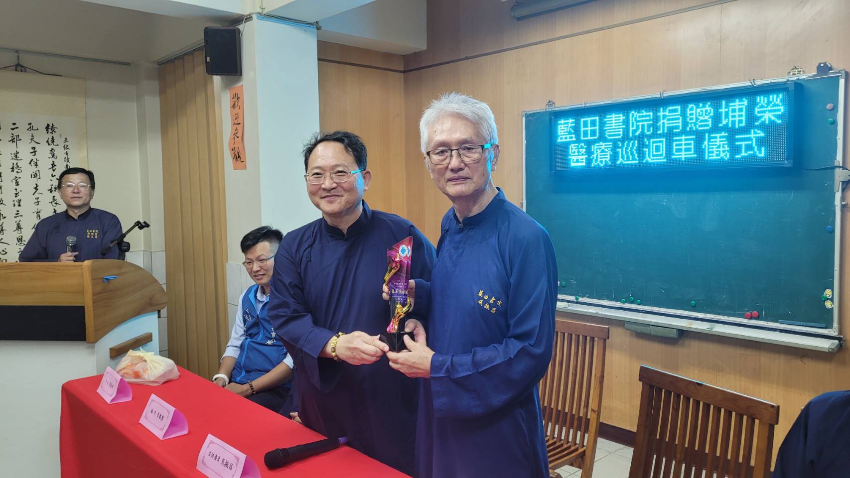 南投藍田書院向來積極投入公益慈善與社會教化工作,對於社會公益及救濟弱勢不遺餘力,此次捐贈臺中榮總埔里分院醫療巡迴車一部,由書院委員會及功德會共同出資捐贈臺中榮總埔里分院醫療巡迴車,相能讓偏遠地區及資源有限地區居民能獲得更優質醫療照護。