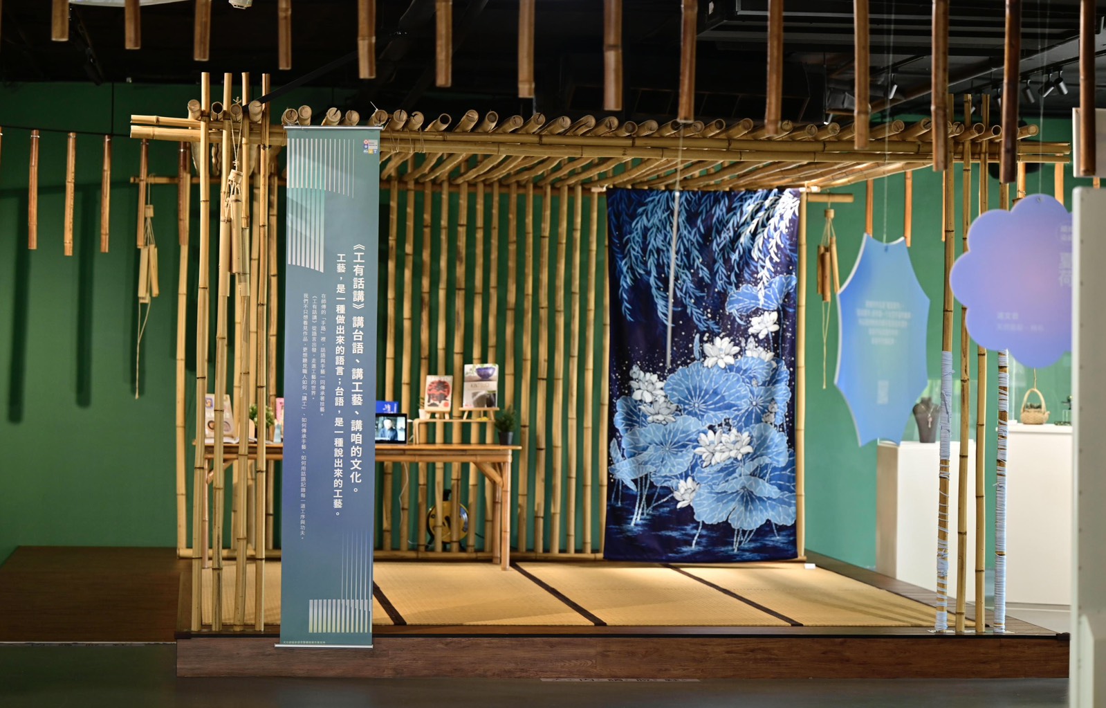 為呼應詞庫主題,同步推出《手路 ê 話》、《師傅 ê 喙口話》、《話來配對》三大展區,展出八位工藝家的作品,透過語言的角度切入,讓民眾走進工藝現場,感受臺灣工藝與在地語言交織而成的文化風貌。臺灣擁有豐富多元的語言資源,卻因世代轉換,母語使用日漸式微,為保存珍貴的語言文化資產,工藝中心積極推動「文化部國家語言整體發展方案」,並委由社團法人臺灣工藝聯盟總會執行建構「台語工藝詞庫」網站,內容涵蓋工藝名稱、工具、材料、技法等專業語彙,未來可廣泛應用於教學、展覽、文獻與導覽,期望落實台語在生活與專業領域的實用與傳承。