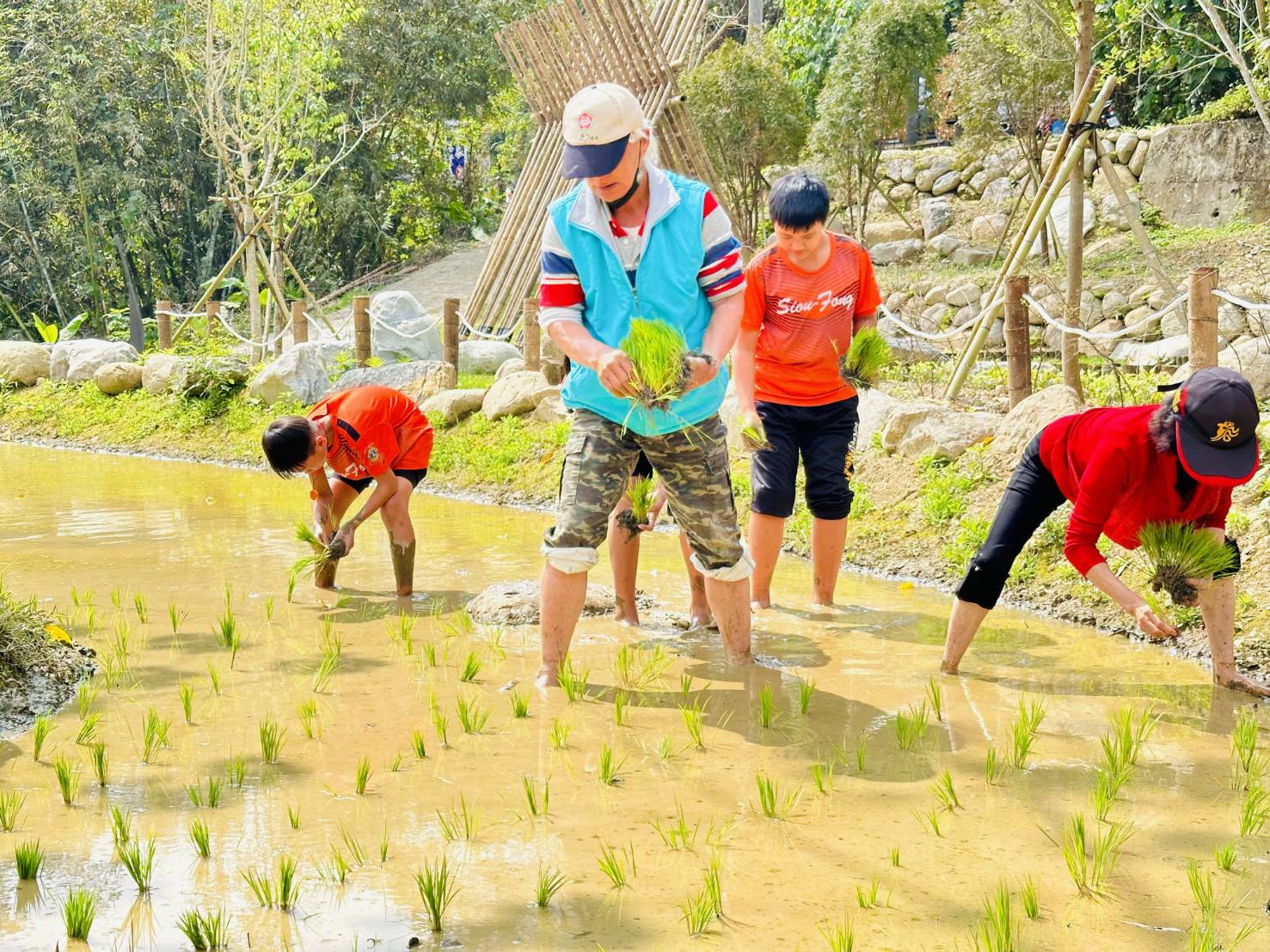 坪仔頂水梯田於今(114)年2月初完成修復,次月並由社區邀請秀峰國小師生共同種下在地鹿光米,學習傳統農耕與梯田文化知識,秀峰村村長曾文香及秀峰社區發展協會理事長黃炩炤亦捲起褲管親自下田示範。黃炩炤理事長提到,坪仔頂水梯田過去主要種植水稻,後來因年久失修,加上921地震後灌溉溝渠損毀而荒廢。如今透過農村再生協助,重新修復梯田、引入水源灌溉,不僅讓在地學童更認識自己的家鄉,也讓傳統文化透過親身實作的教育繼續傳承下去。