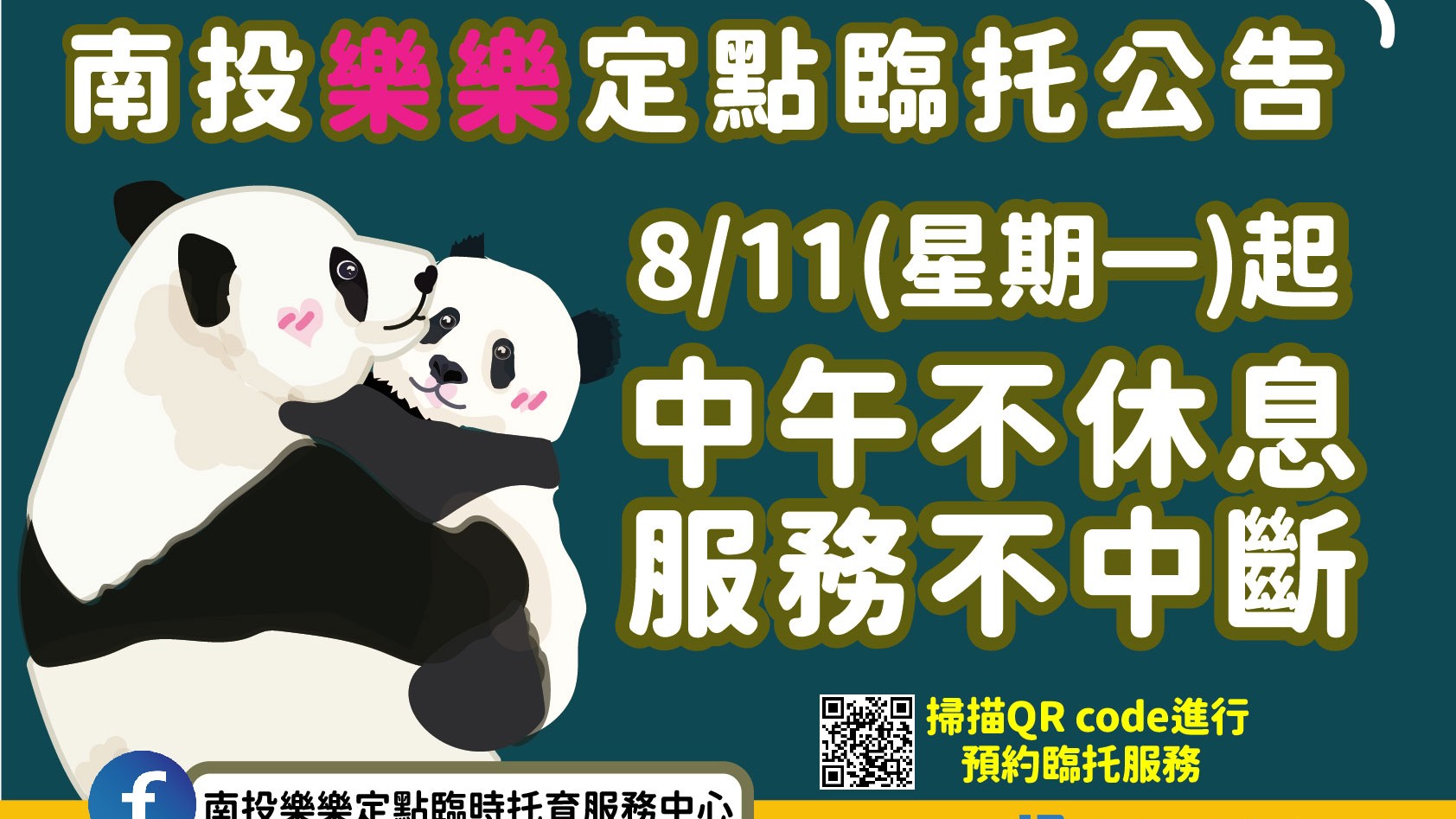 (特派員廖廣學 南投報導) 為協助南投縣內家長兼顧家庭與工作,南投縣政府積極推動多元育兒政策,設置彈性托育資源,減輕家長教養壓力,自114年8月11日起,為提升育兒服務的便利性,南投樂樂定點臨時托育服務中心將調整服務時間為每週一至週五上午9時至下午4時,中午不休息,提供不中斷的服務。新措施將更貼近家長實際需求,特別是需要長時間照顧支援的家庭,可更彈性地使用托育資源。