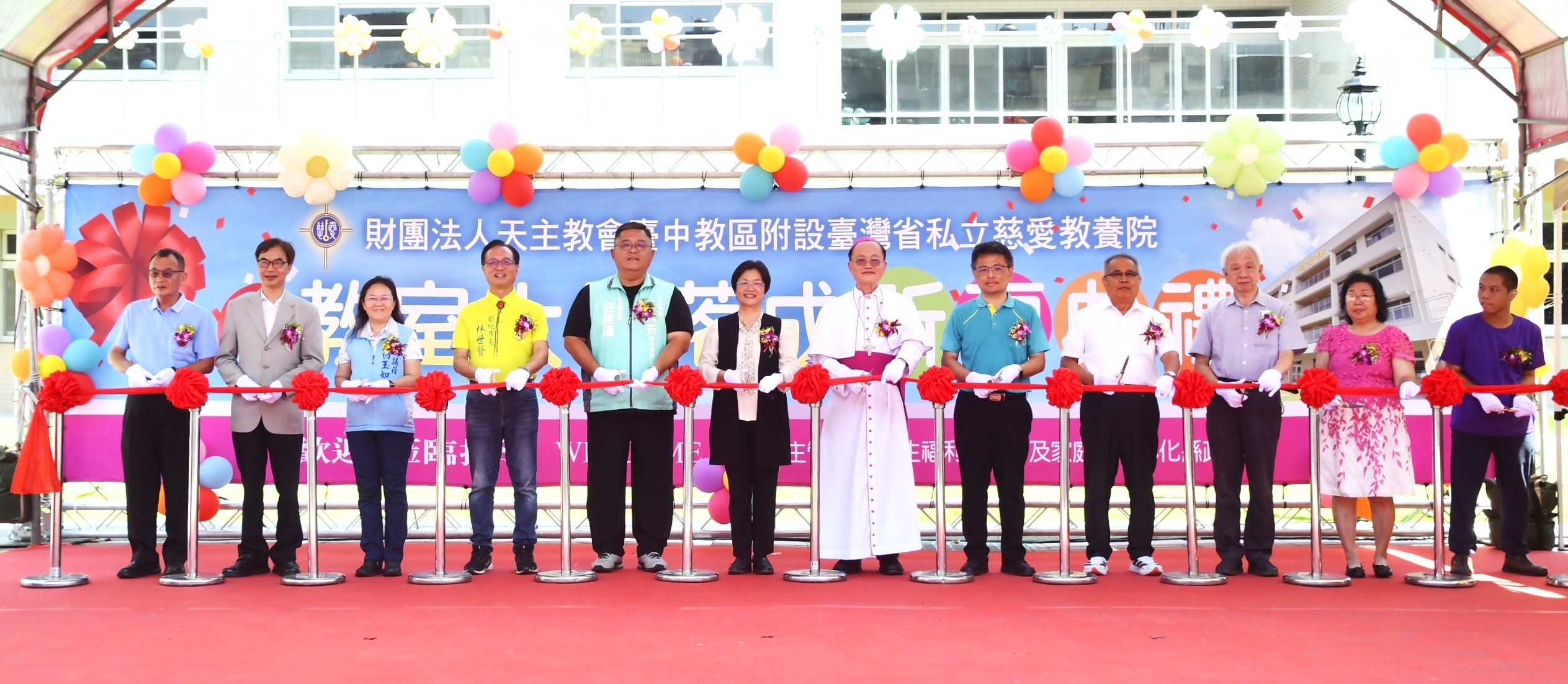 (記者邱暐茹 彰化報導)慈愛教養院於今(15)日上午在彰化市大埔路舉辦「教室大樓落成祈福典禮暨剪綵活動」,彰化縣長王惠美出席表達對身心障礙朋友長期的關懷與支持,並由天主教會台中教區蘇耀文主教親自主禮祈福。王縣長表示,慈愛教養院自民國71年創院至今,致力於陪伴並照顧身心障礙者,至今約有150位身心障礙者由慈愛教養院提供照顧服務,感謝院方團隊的辛苦付出,秉持天主博愛與慈愛的精神,關懷彰化鄉親。