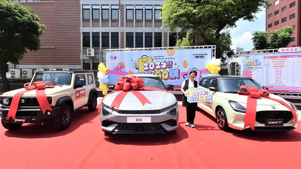 王縣長表示,鄉親一直敲碗的「2025彰化GO購」,全面升級!共有3次抽獎活動,最大獎項是 Kia EV6 Air價值近200萬元的電動車,更有SUZUKI NEW SWIFT、SUZUKI JIMNY等特別適合年輕人的潮車,還有黃金條塊5名、萬元大禮包共30名,最高獎金10萬元,以及現金獎及雲端發票獎(500元電子禮券)等共3,000個獎項,總獎項價值破千萬元。