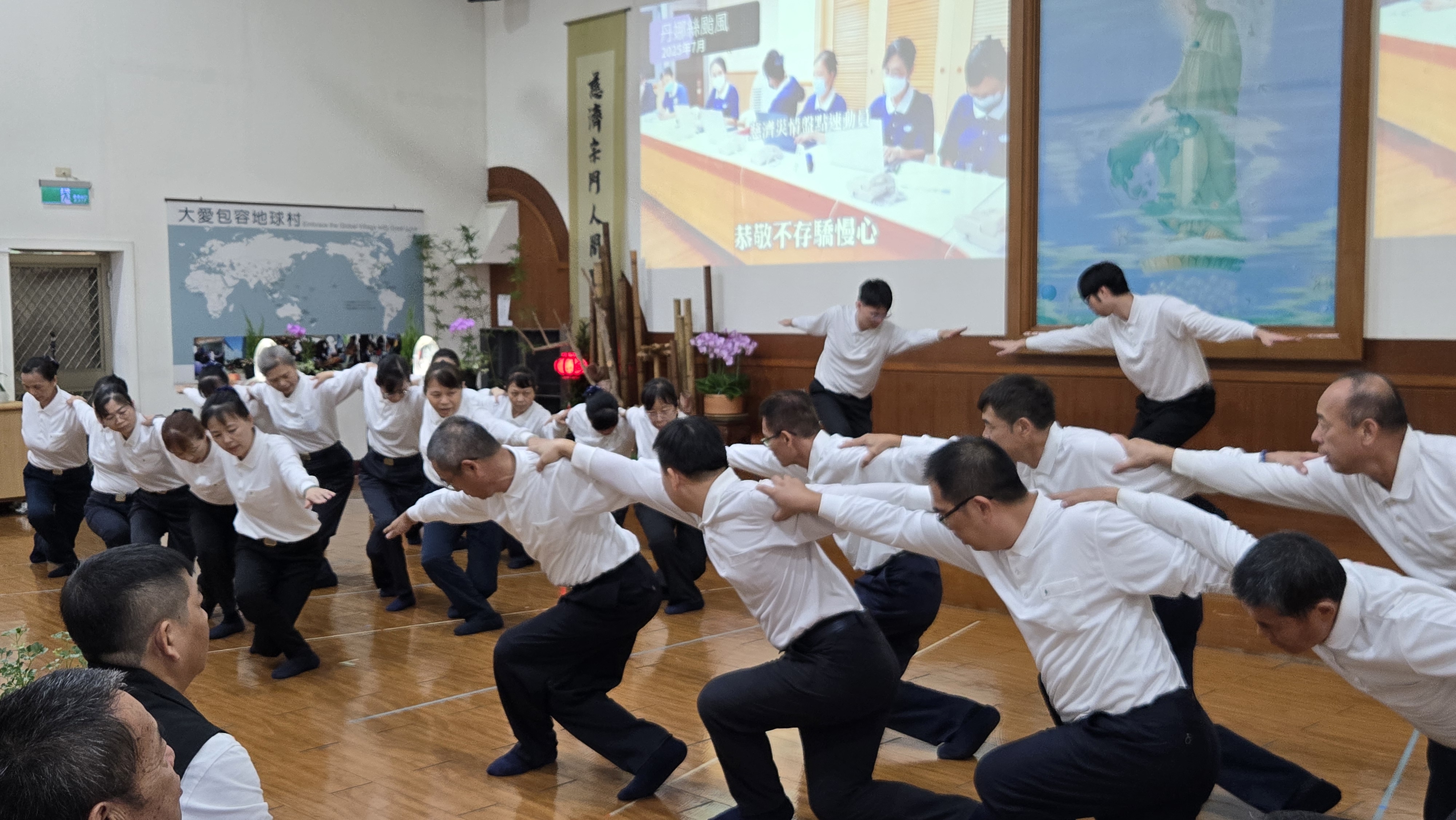 慈濟為推動茹素護生救大地,特在社區舉行七月吉祥月祈福會上,邀請村里長帶動社區民眾一起參與,由村里長、當地仕紳獻供,引導與會大德參與齋戒茹素饗宴。活動中,影片播放慈濟人在社區投入救災、訪貧工作畫面,印證慈濟人實踐佛陀教義的精神。