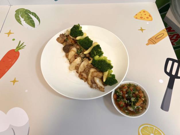 比賽作品〈來惜—兒子的胡鬧脾氣〉靈感來自父母疼惜孩子的心情,將蔬菜皮與菜梗重新賦予價值,化為小朋友喜愛的漢堡排,傳達料理也能療癒情緒;另一道〈五姑姑的幸福滋味〉則以五花肉搭配杏鮑菇,透過簡單卻溫暖的家常做法,展現家庭日常的幸福感。兩道作品充分呼應「全食物利用」評分重點,成功打動評審。