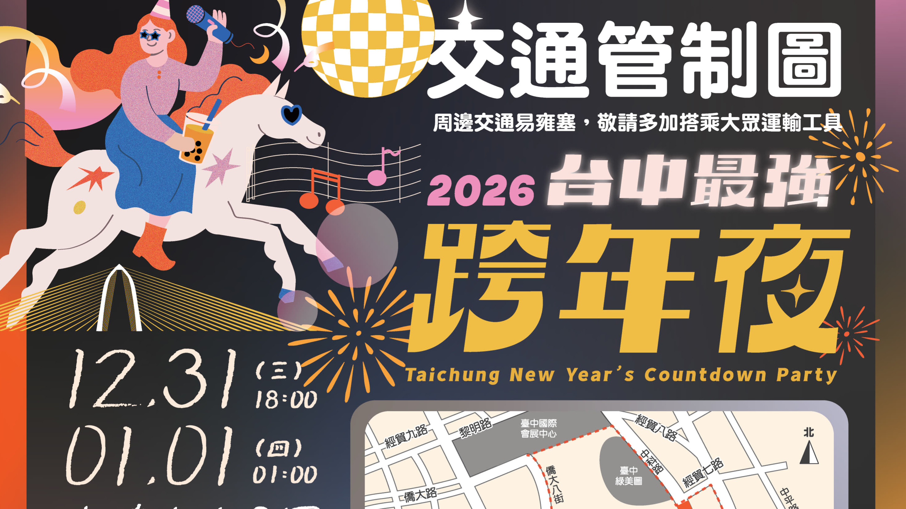 2026年臺中市中央公園跨年晚會活動 呼籲市民多利用大眾運輸