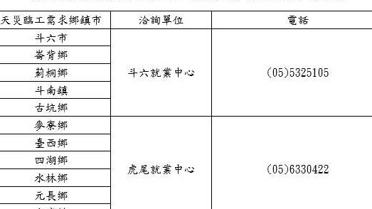 雲林縣爭取近百名臨工機會 投入丹娜絲颱風災後復原工作