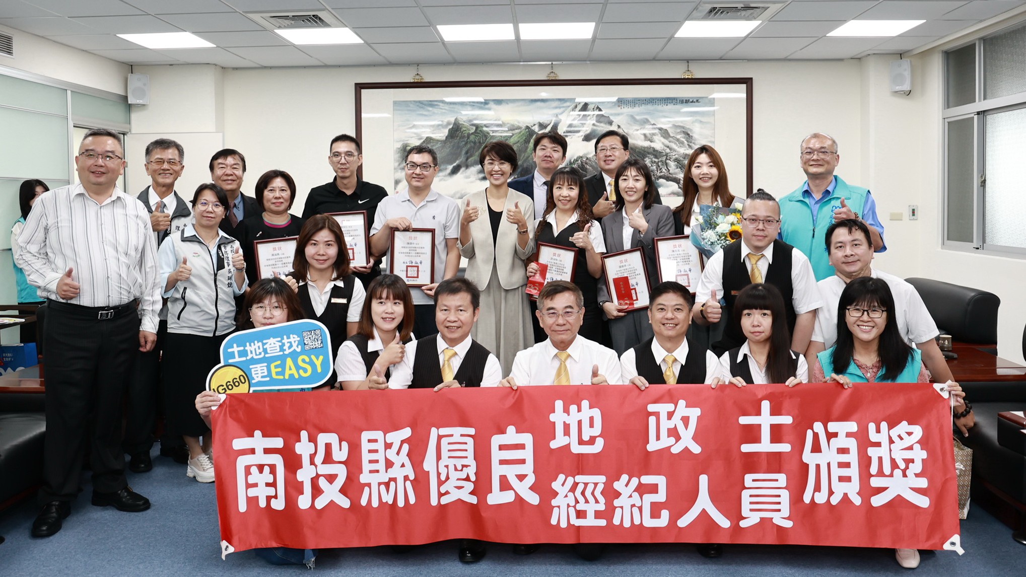 許縣長頒奬表揚本縣優良地政士及不動產經紀人員