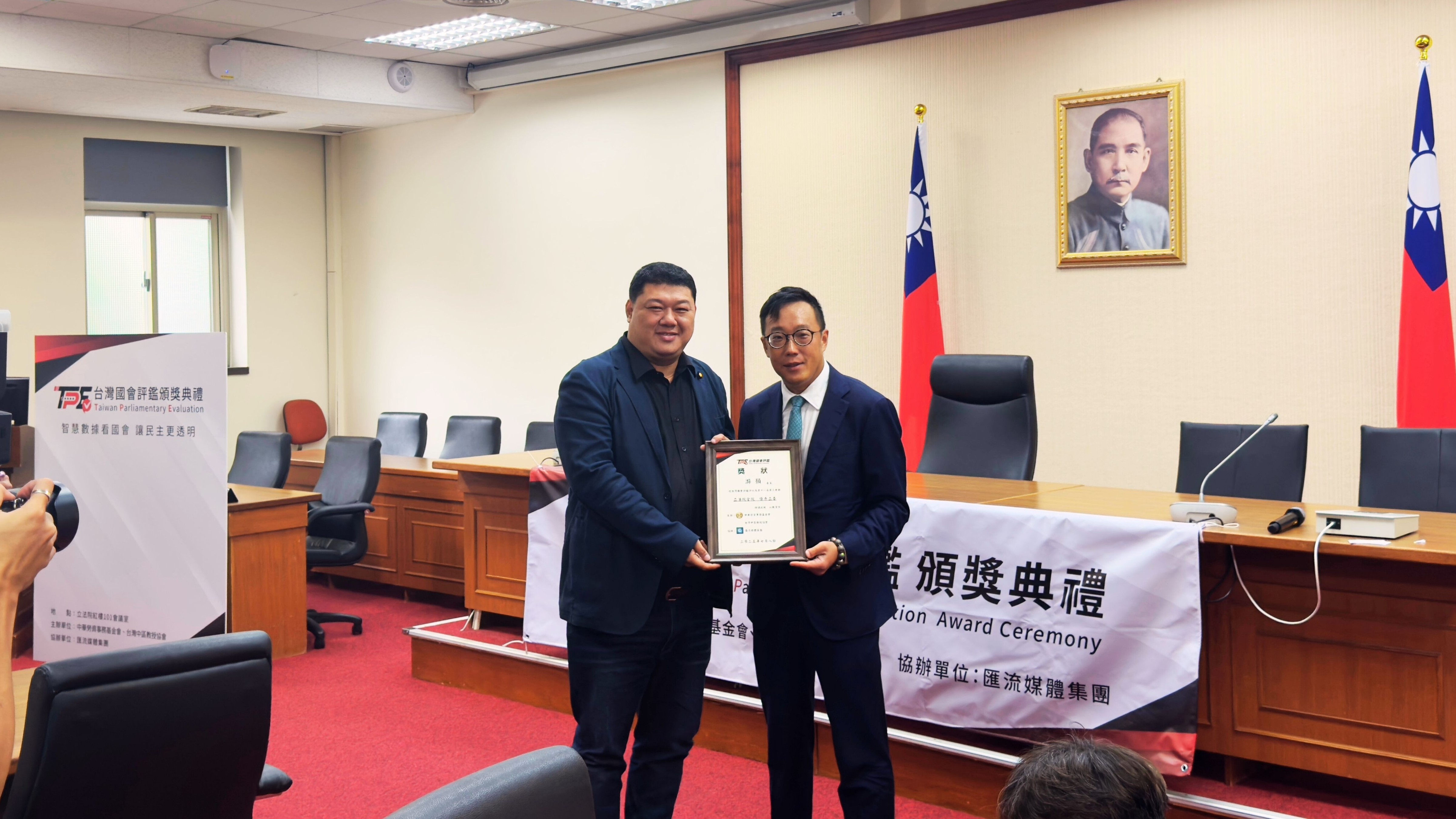 游顥獲選國會優秀立委 肯定以AI數據為基礎之客觀評鑑