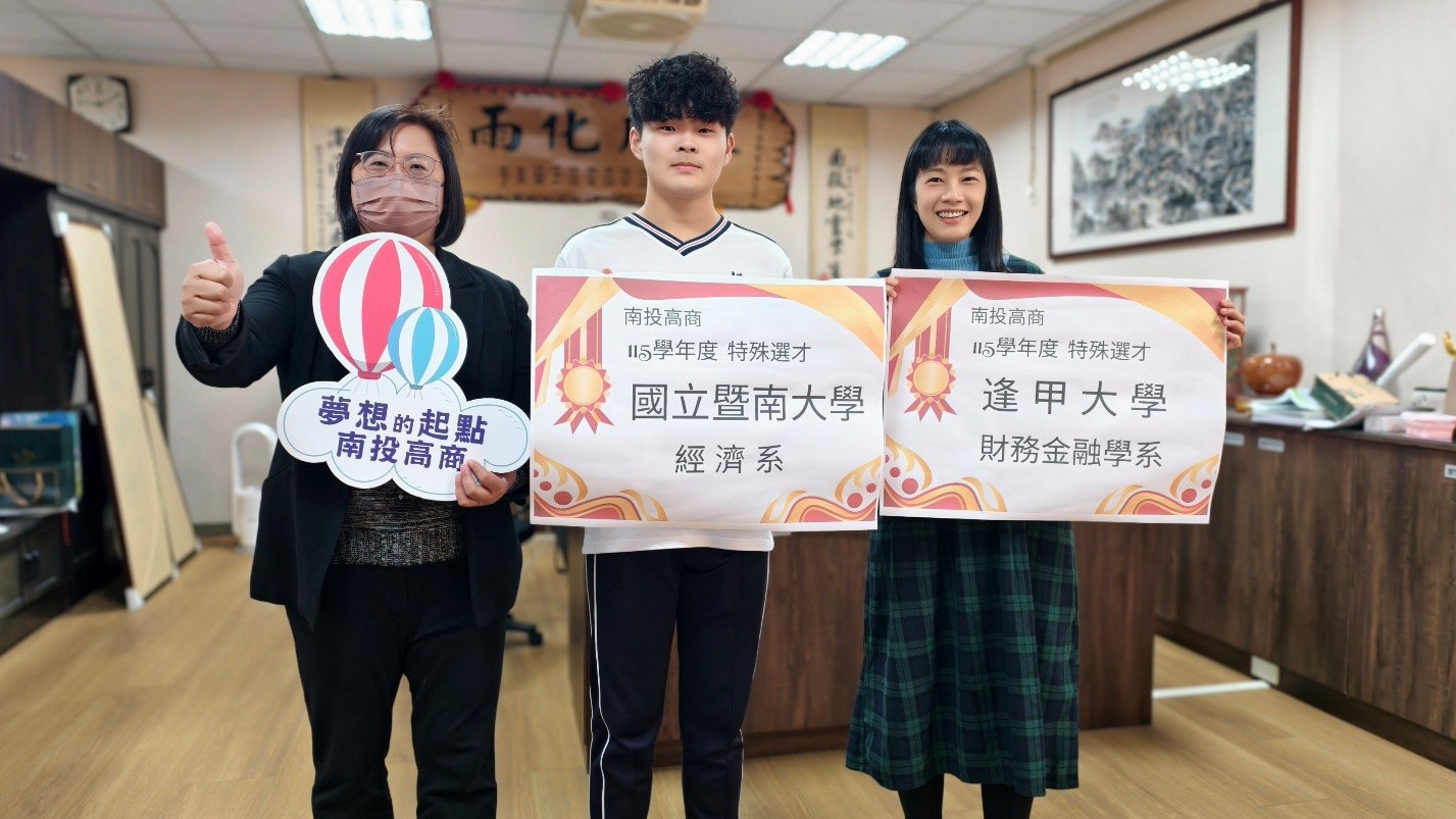 特殊選才雙榜錄取 南投高商洪詠智錄取暨南大學、逢甲大學