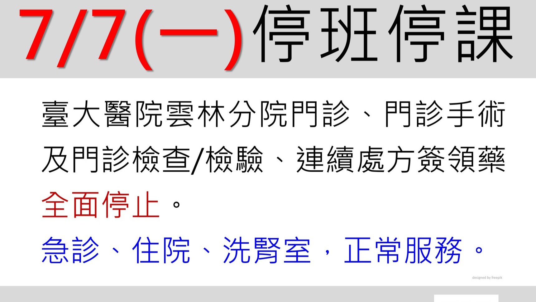 臺大醫院雲林分院丹娜絲颱風期間醫療服務訊息公告